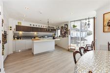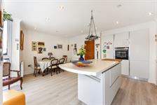 Inset spotlights, double glazed full height double glazed angled windows, double glazed window, two radiators, kitchen comprising wall and base mounted units and matching island breakfast bar unit with work surfaces over, sink and drainer with mixer tap over, integrated appliances including fridge freezer, high level electric oven and microwave oven, 4 ring electric induction hob, extractor fan, and dishwasher, part tiled walls, LVT flooring.