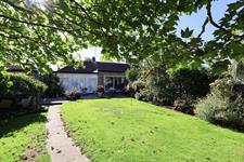 The property is set back off the road with drive way and parking for a number of cars leading to garage to the side. The front garden is lawned with attractive flower and shrub borders.