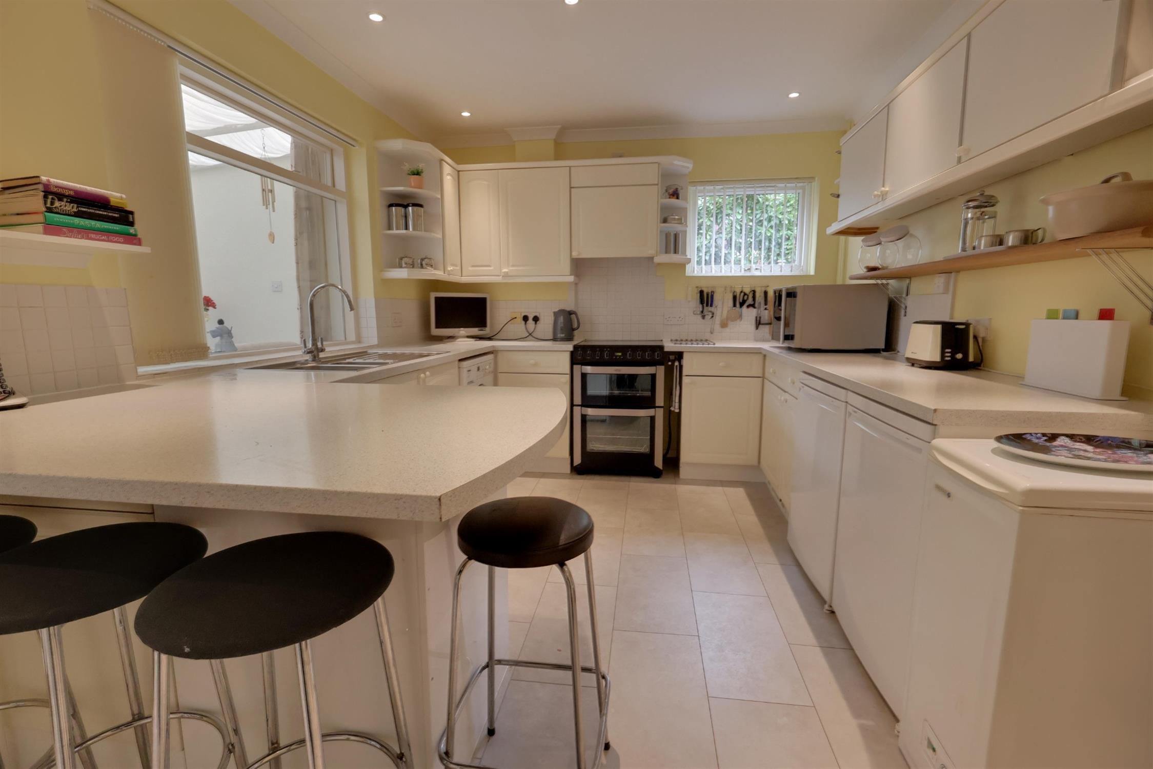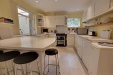 Excellent range of fitted floor and wall units with contrasting work surfaces and complimentary tiling to walls. Peninsular breakfast bar / serving area. Inset sink unit. Space for slot in cooker. Under counter space for fridge and freezer. Plumbing for automatic washing machine. Larder cupboard. Concealed gas fired boiler. Double glazed window to side. Window to conservatory.
