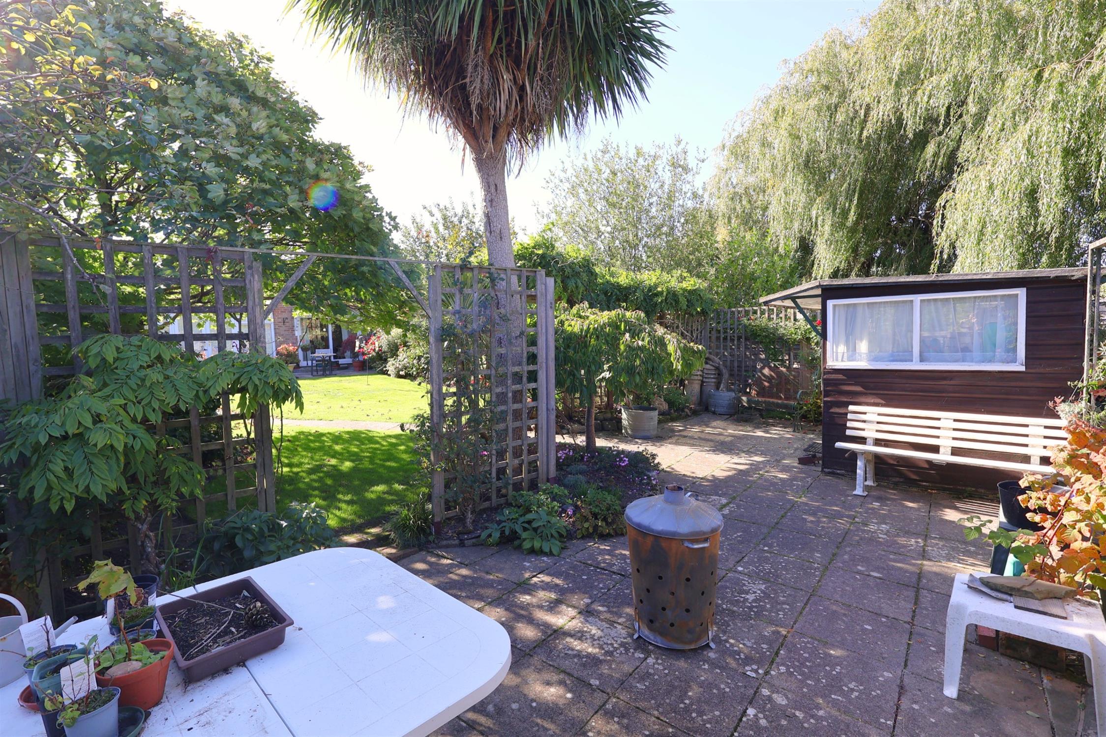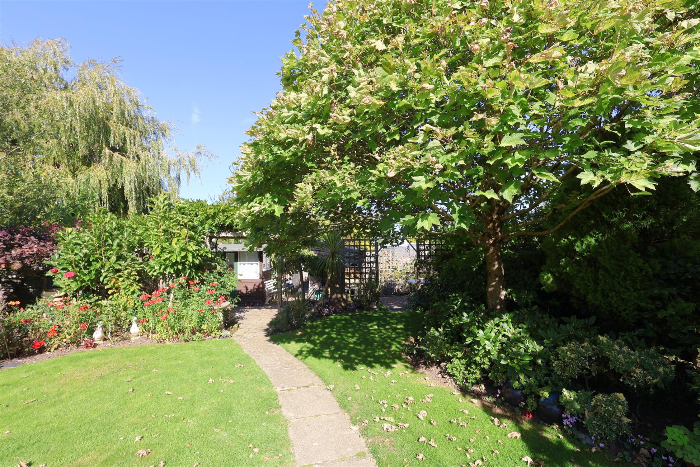 Outside the well tended rear garden is a particular feature, of an excellent size with extensive colourful mature flower and shrub borders, fruit trees, soft fruits, Summer House and greenhouse.