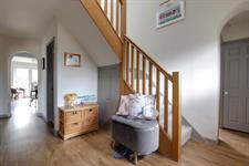 Double glazed composite front door. Double glazed window to the front aspect. Smooth ceiling. Staircase rising to the first floor with an understairs storage cupboard. Radiator. Storage cupboard with a double glazed window to the front aspect. Wood effect luxury vinyl tiled flooring.