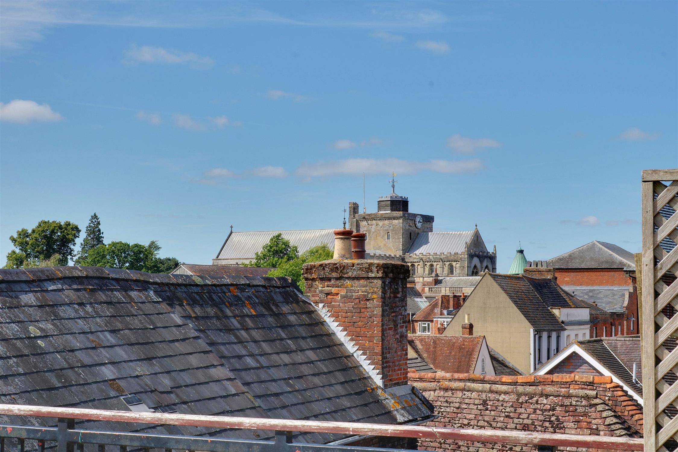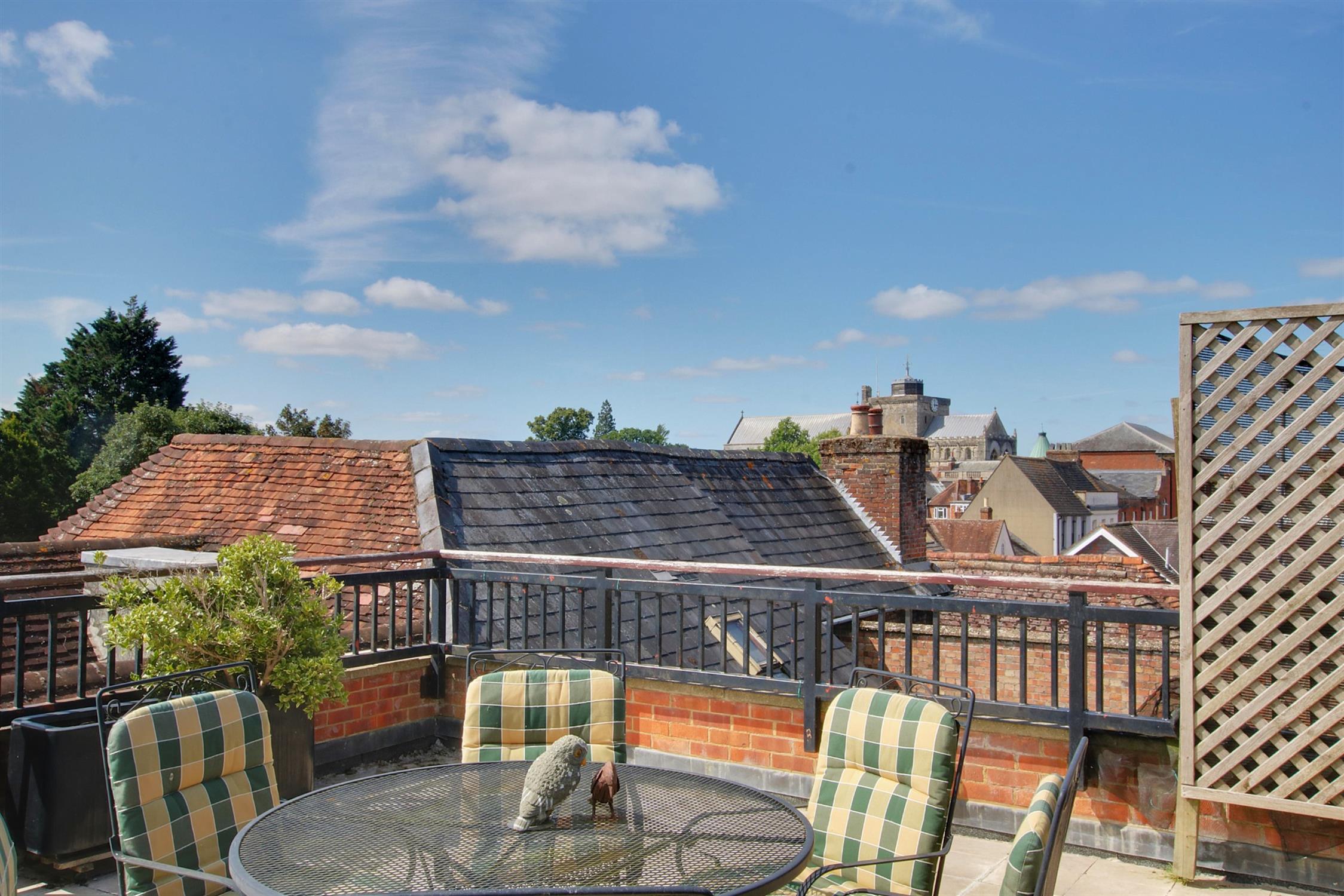 The roof terrace really is the star of the show, measuring over five meters by five meters, with panoramic views across Romsey, the Abbey and as far as Green Hill. Its south-westerly aspect ensures a sunny outlook and the rooftop nature ensures an excellent degree of privacy. Two allocated parking spaces are available in the undercroft car park.