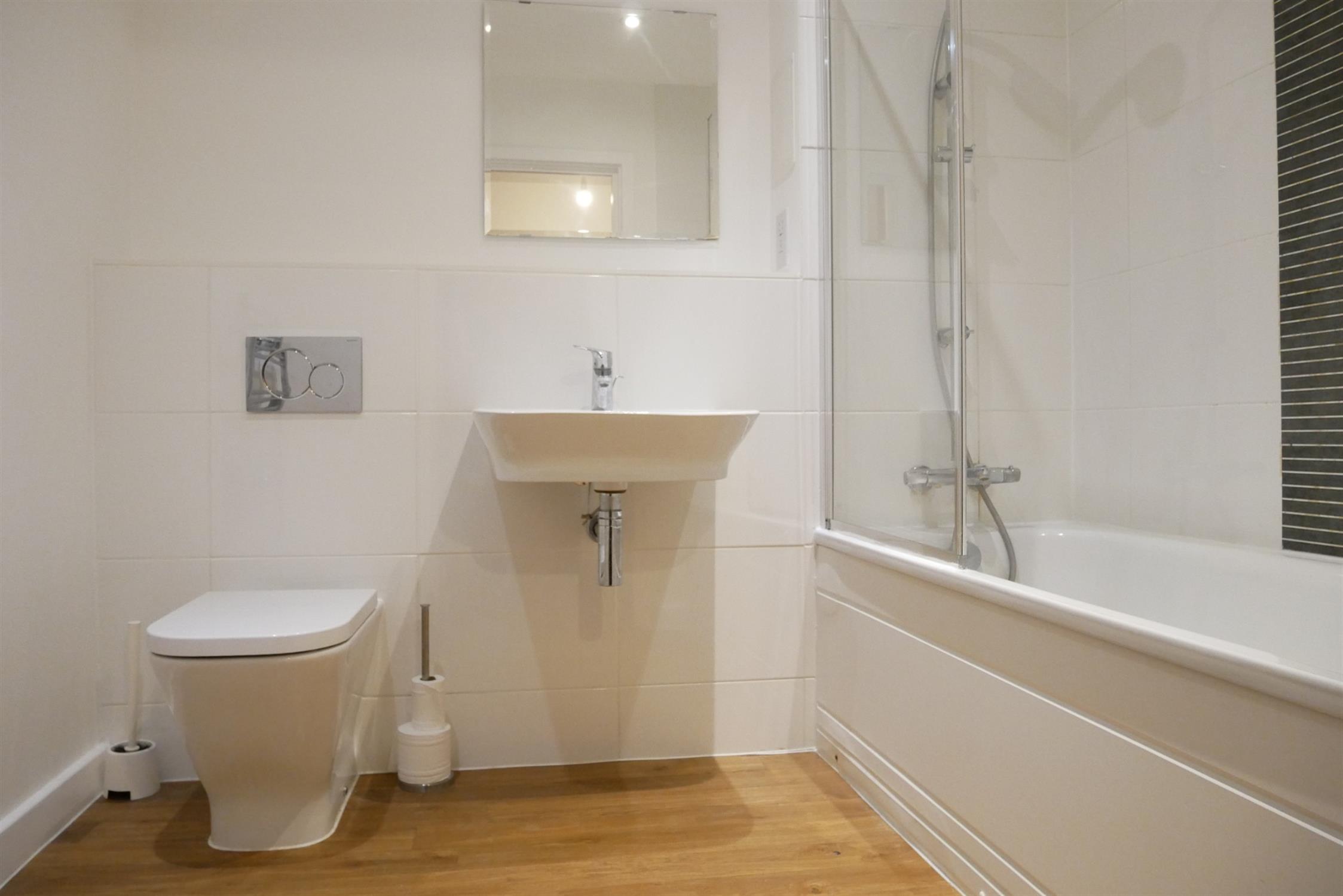 BATHROOM - Modern fitted bathroom with w.c., sink and bath with shower over.