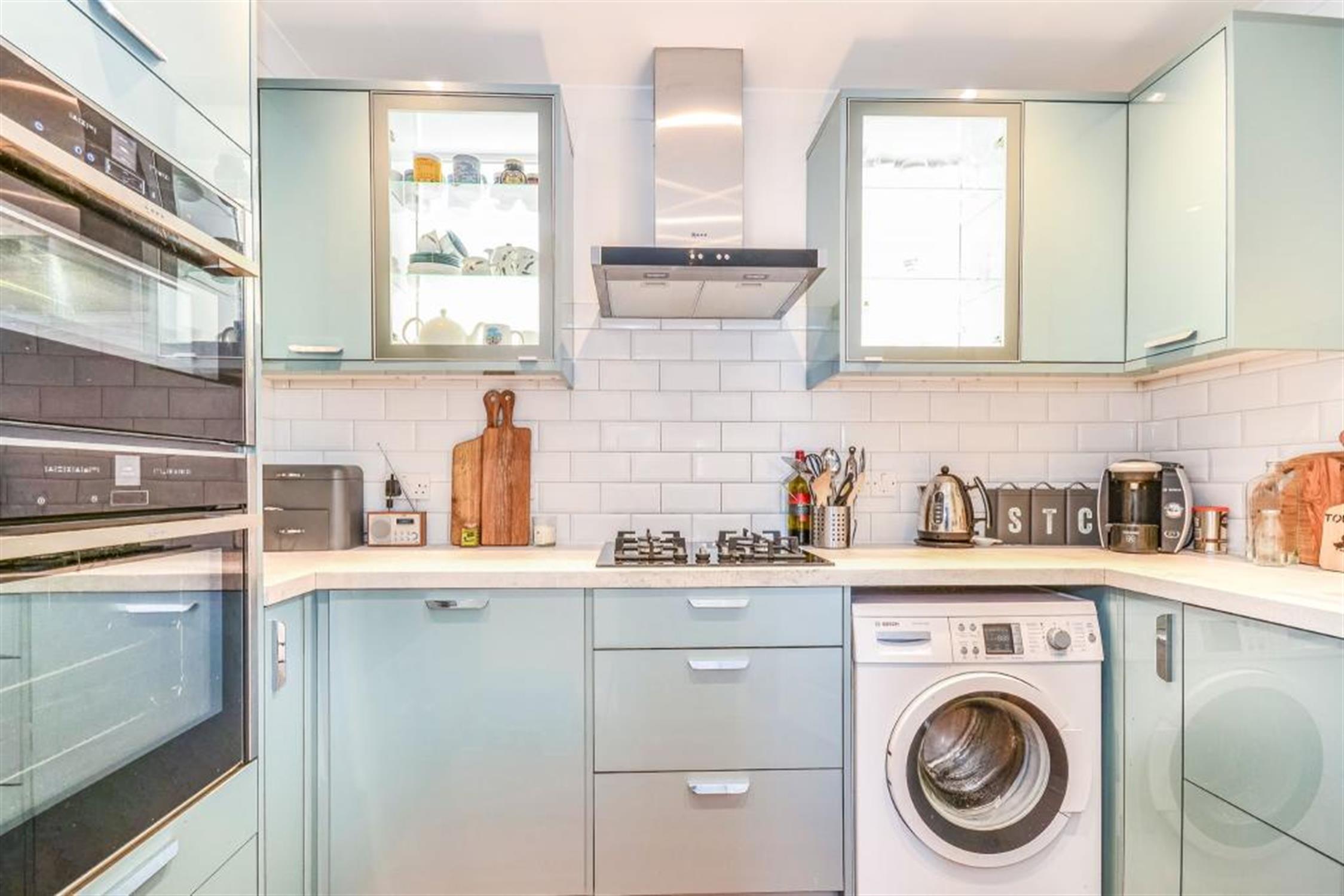 KITCHEN - Modern fitted kitchen with a range of wall and base units. Appliances including a gas hob, electric oven, integral microwave, integral fridge/freezer and washing machine. 10'10" x 6'6"