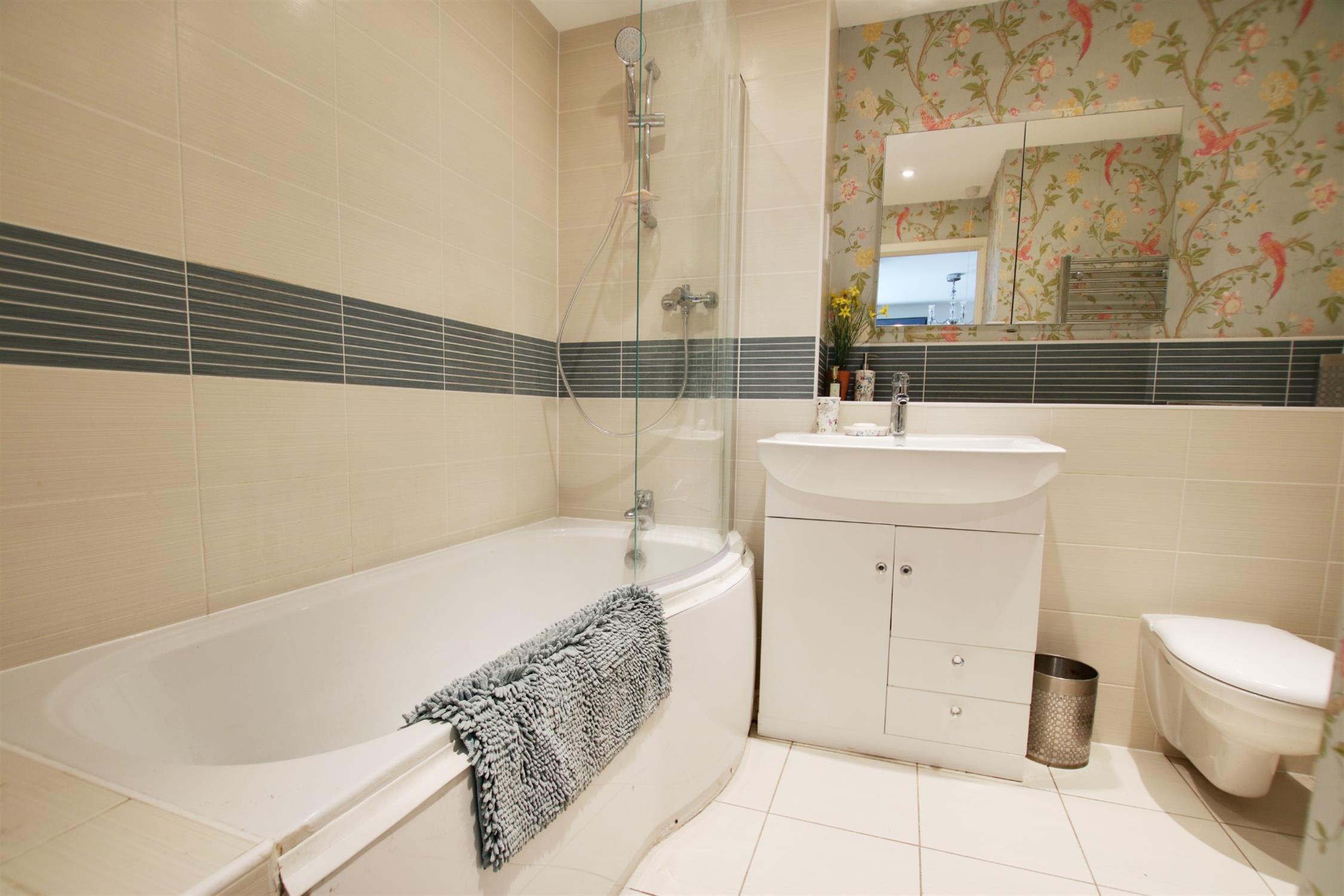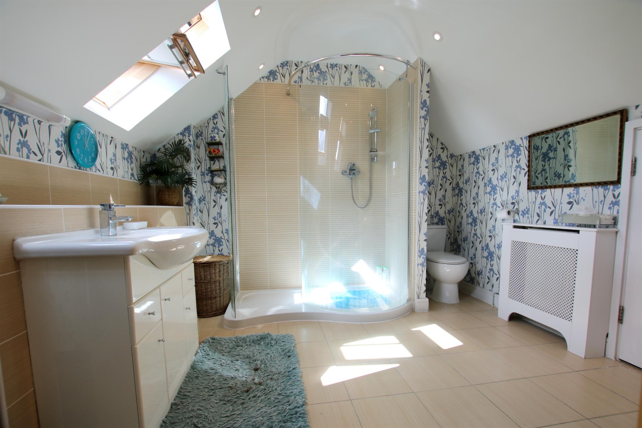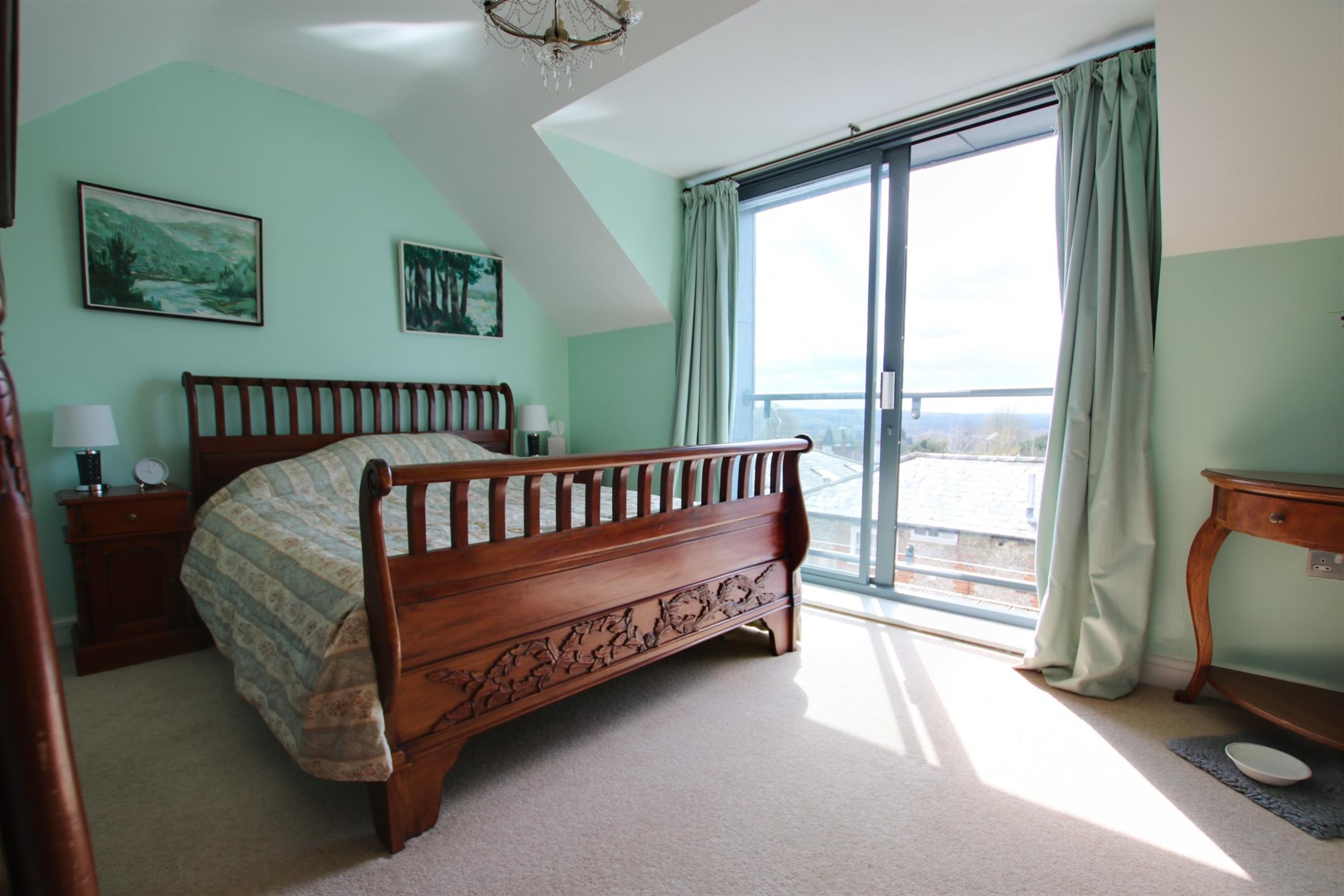 The entire top floor consists of the master bedroom with eaves storage, a roomy built in wardroom and large bathroom. There is another balcony off the bedroom, accessed via sliding glass doors which provides breath taking views of the distant St Catherine’s Hill and Twyford Downs. The refitted bathroom includes ample eaves storage, skylights and underfloor heating.