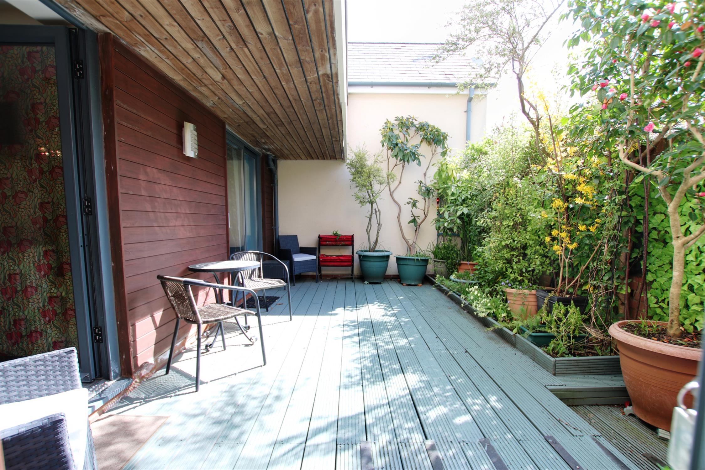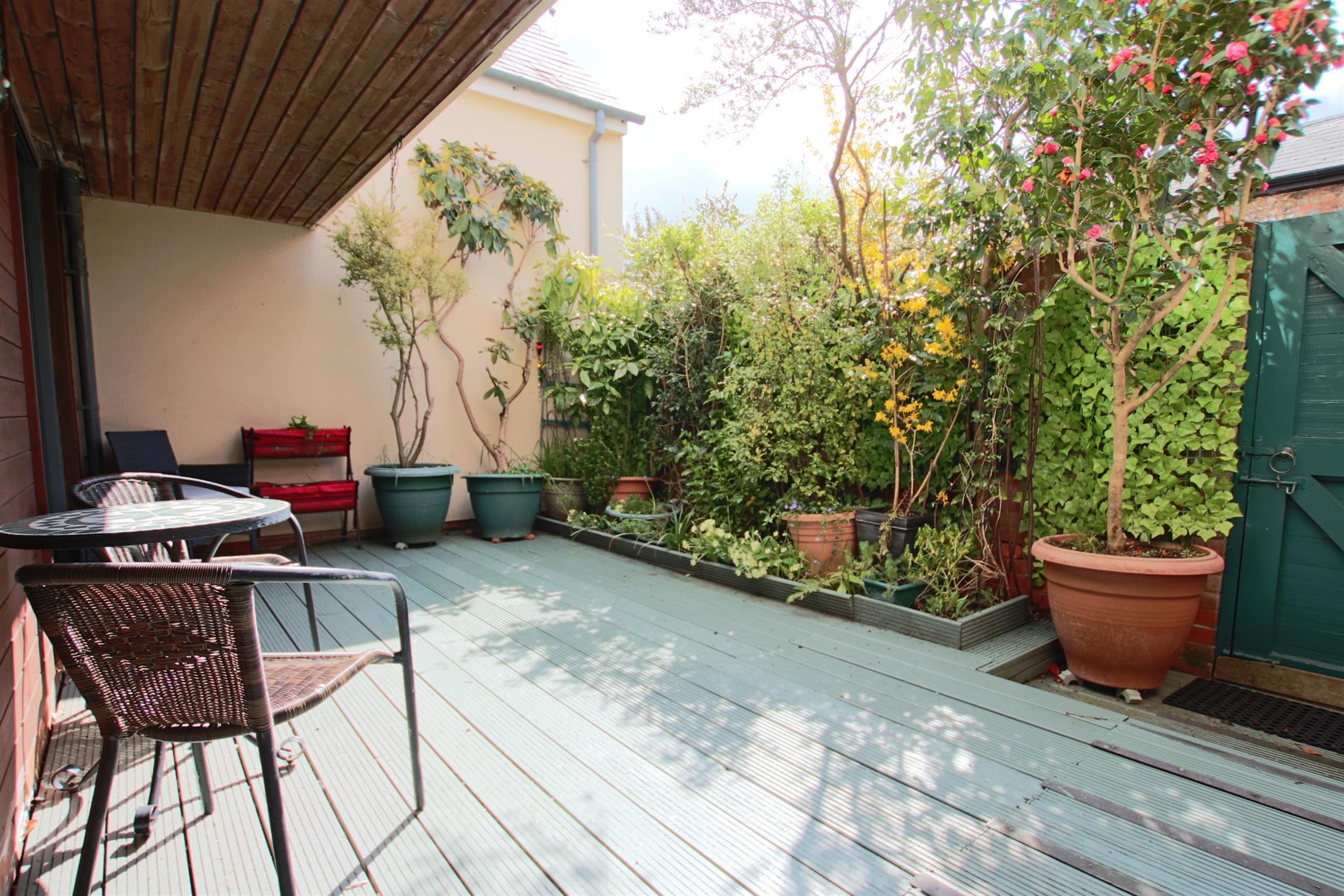 Despite the property’s central location, the courtyard garden is a very private, quiet mecca for both relaxation and entertaining. Inside the courtyard is a tall, lush, mature mixed hedges planted by the current owner. Outside of the private gate and running the length of the property is another mixed, mature border. There is also a separate pedestrian gate on Mews Lane leading to the communal carpark where the allocated and visitor parking is located. The house also has a large, deep, external private storage area fronted by two sets of double doors