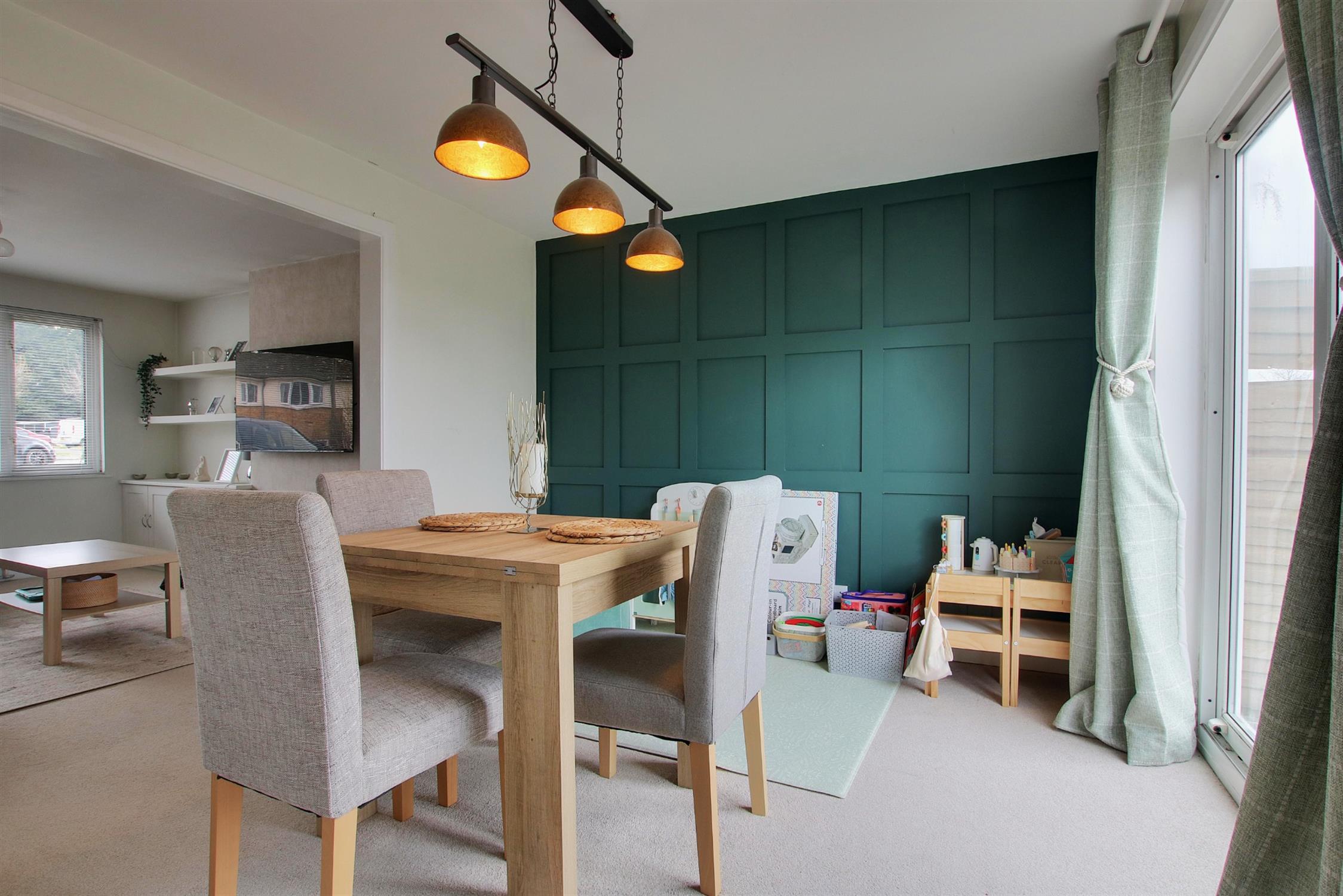 The well-proportioned and extended living space is designed for comfort and versatility. A light-filled lounge seamlessly flows into the dining room, which in turn opens onto the garden, creating an inviting and airy atmosphere. The modern kitchen/breakfast room is a standout feature, offering stylish shaker-style cabinetry and a range of clever storage solutions. Additional ground floor highlights include a handy study or playroom and a separate utility room. With its current layout, the home also presents an exciting opportunity to create a spacious open-plan kitchen/diner/family room (subject to planning), adding even more appeal to this fantastic property.