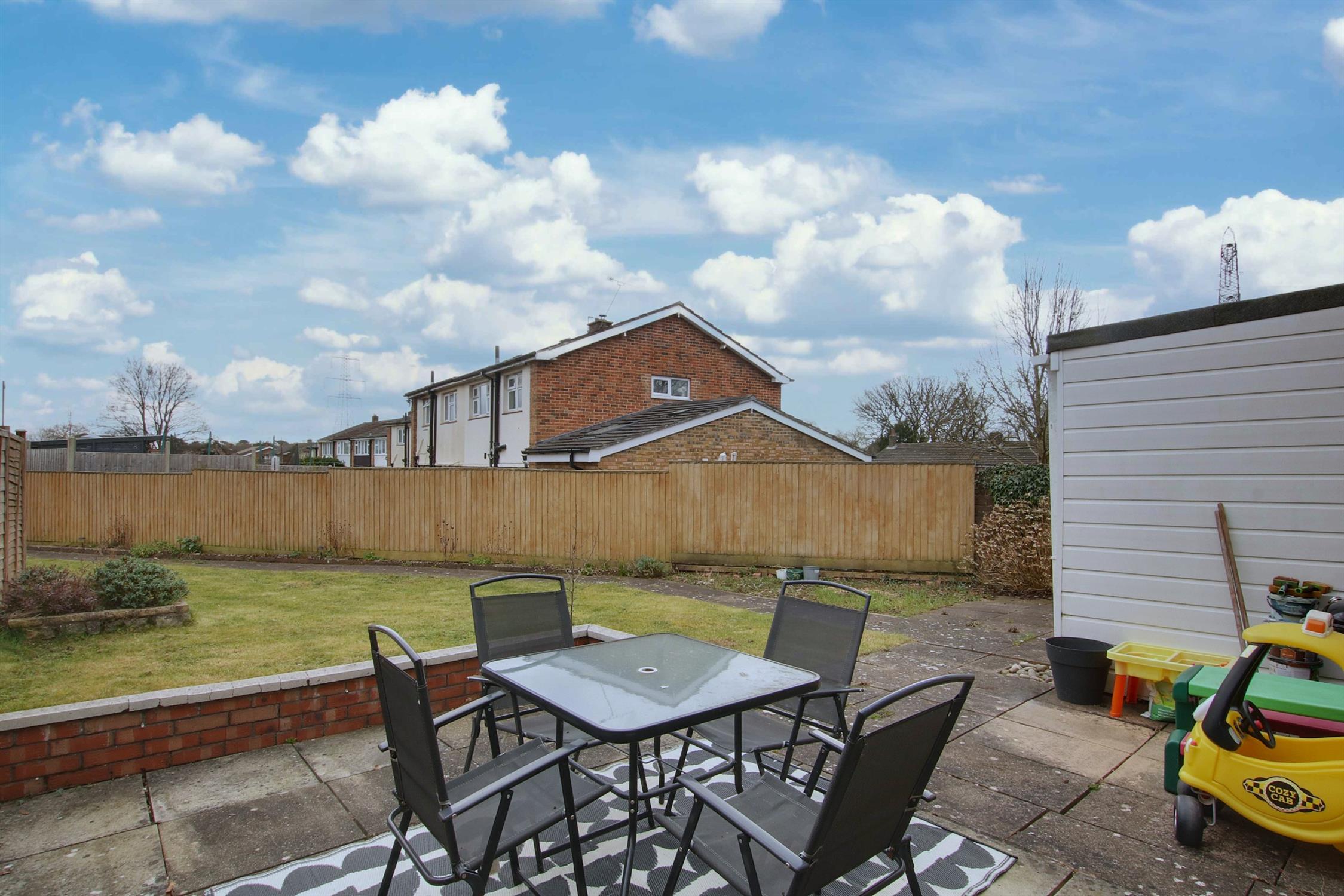 To the front, a paved and spacious driveway parking. To the rear, the property boasts a generously sized garden, offering plenty of space for relaxation and outdoor activities, along with a garage for additional storage or parking.