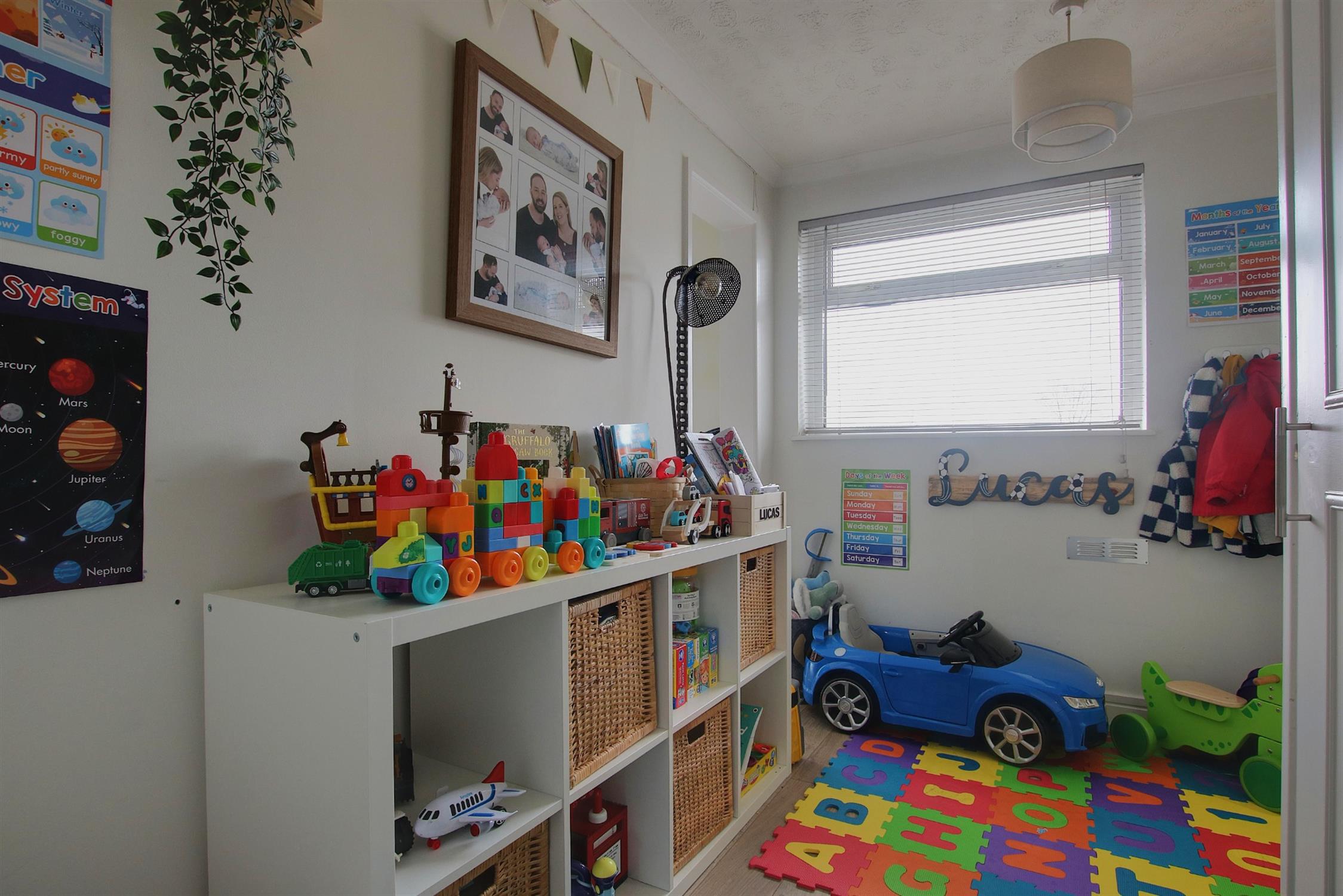 Upstairs, the accommodation comprises a generous principal bedroom, a second double bedroom, and a well-sized single bedroom, all served by a spacious and modern family bathroom.
