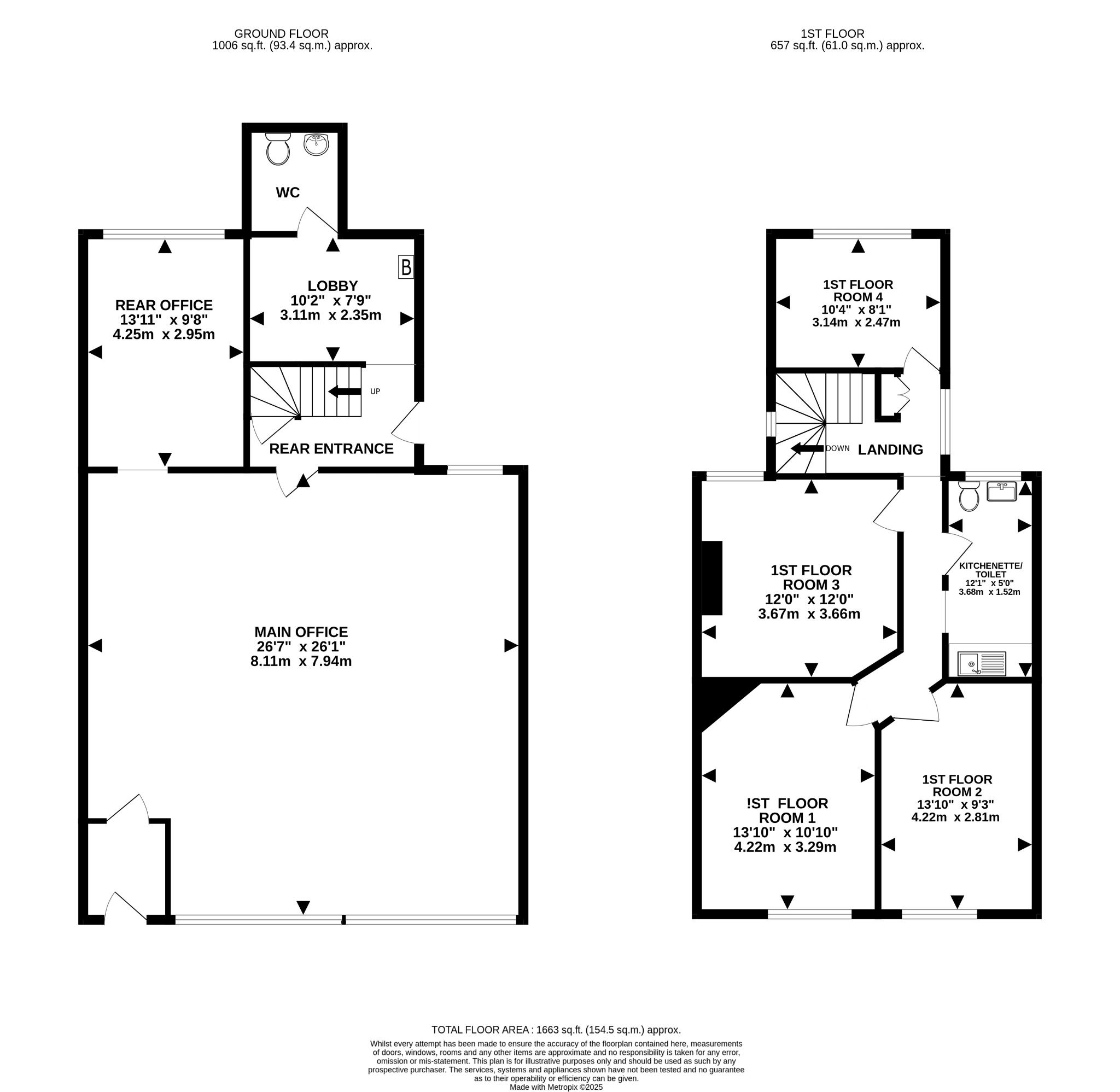 On the first floor are four separate rooms ideal as overflow office space, and a kitchenette/WC ideal for use as staff/comfort area.