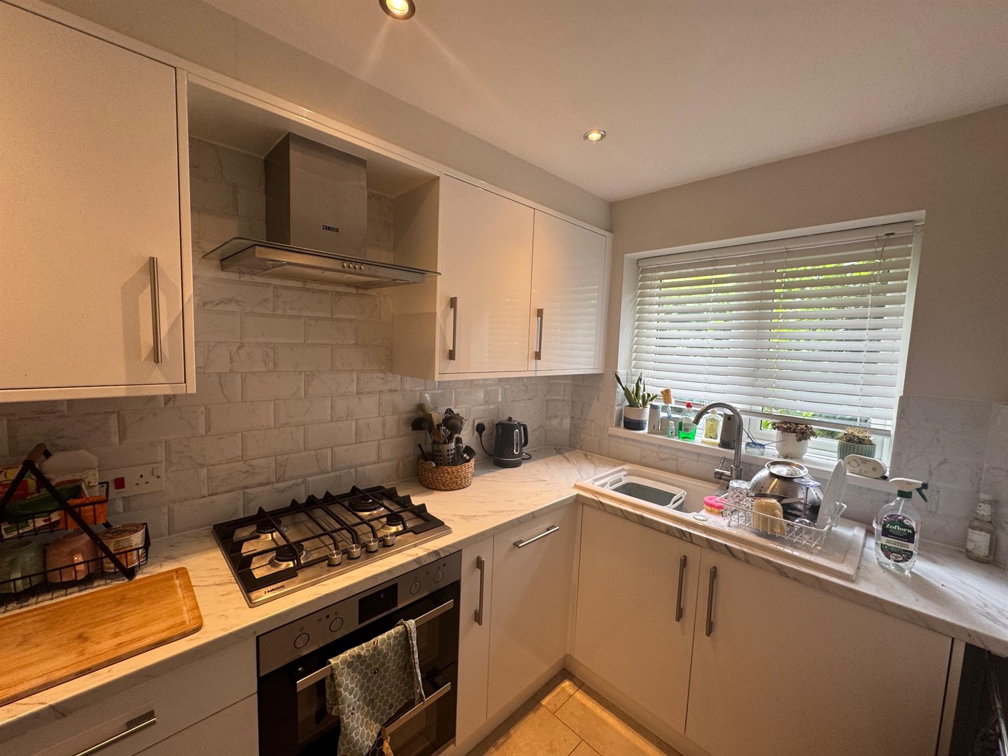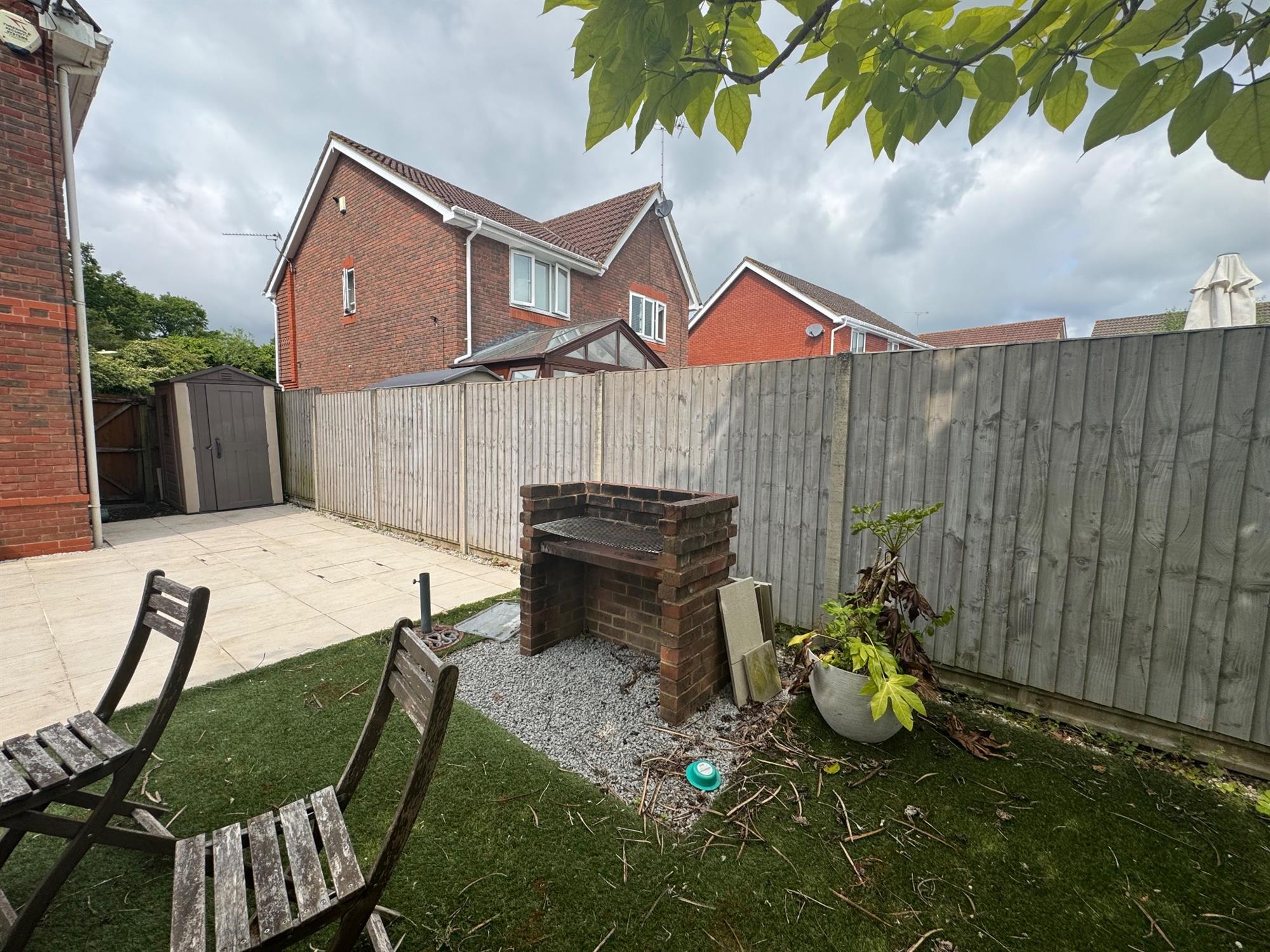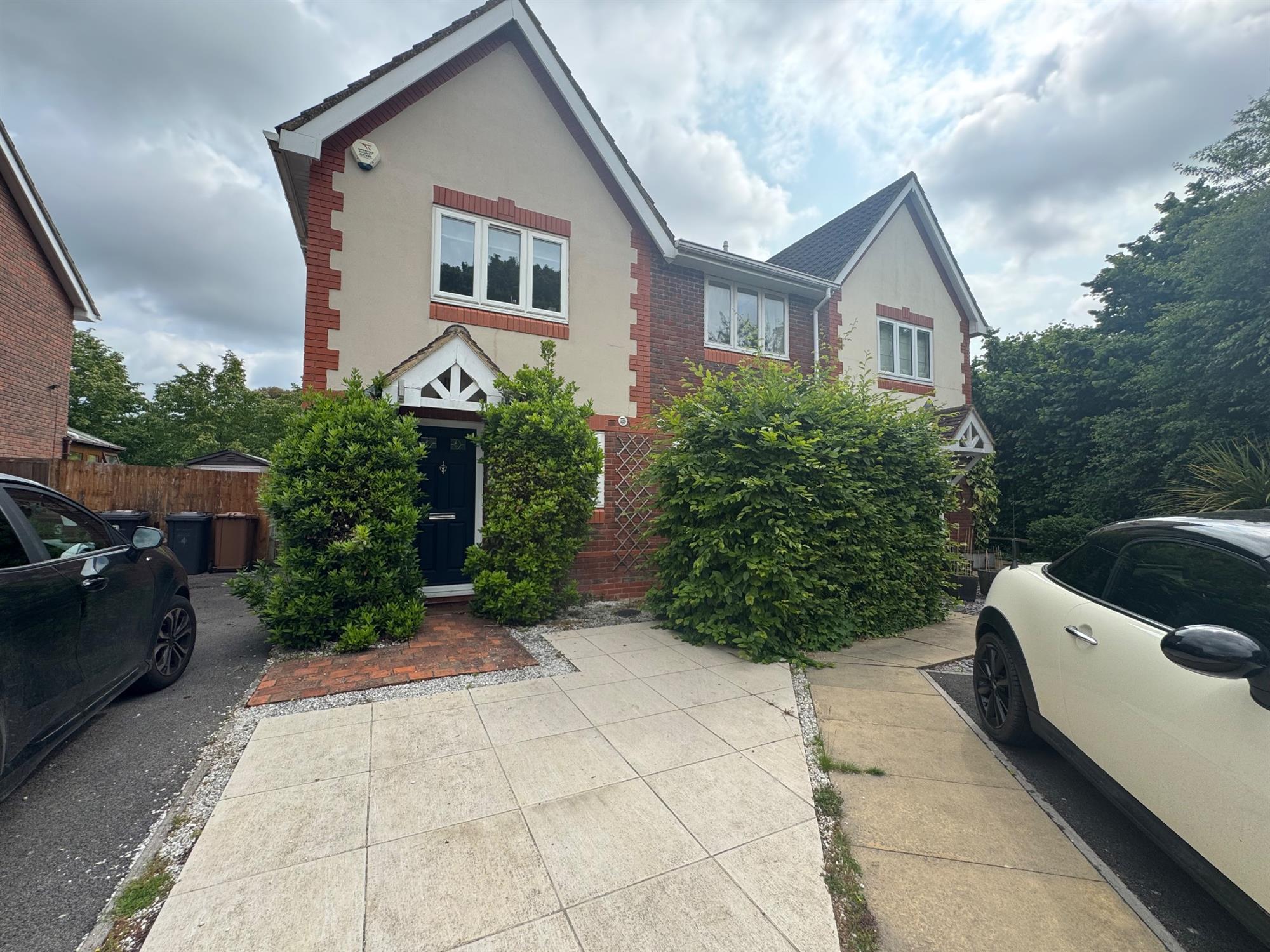 This modern two-bedroom end-of-terrace house, with a driveway, is situated in a popular residential area of Chandlers Ford.