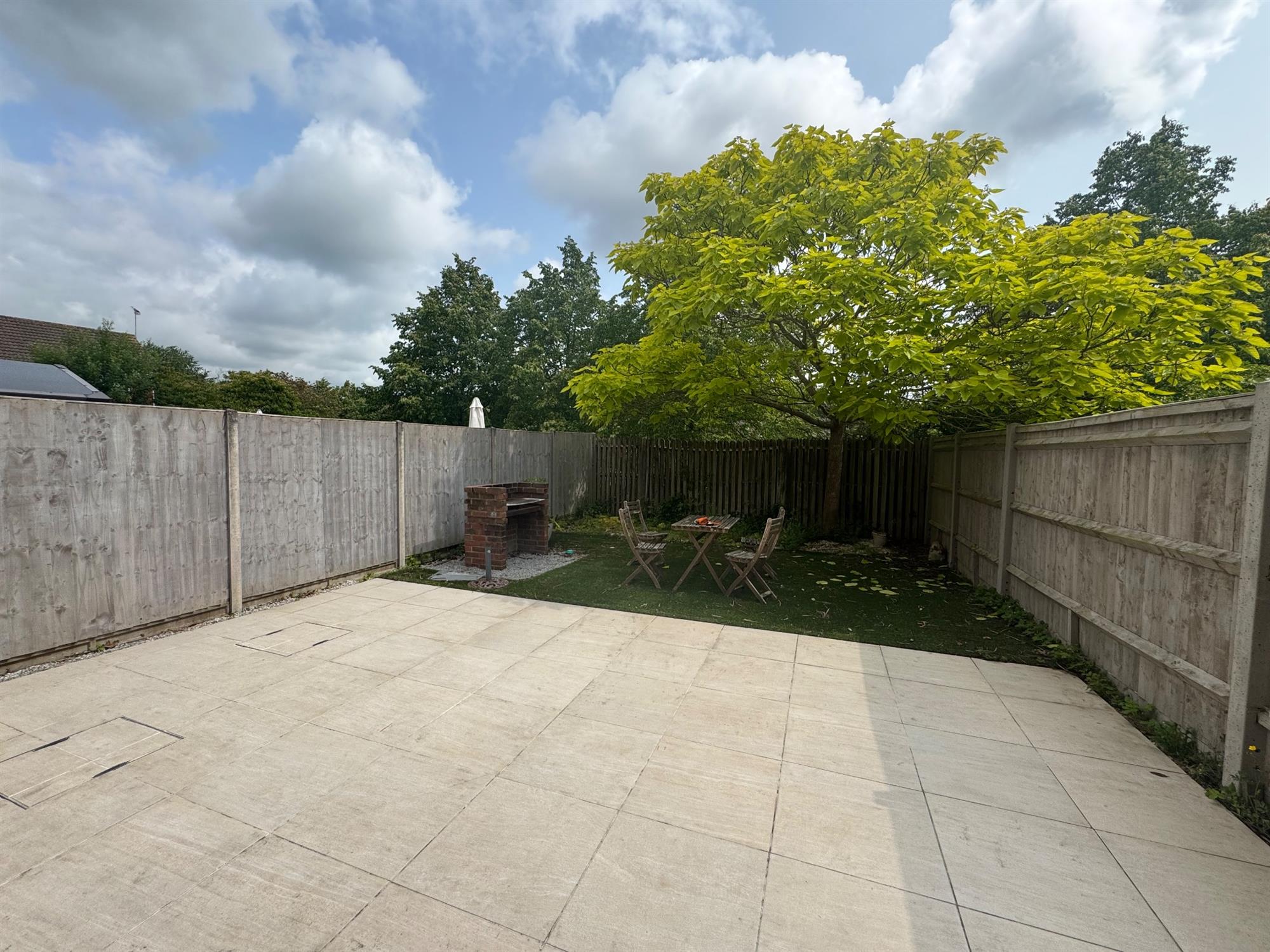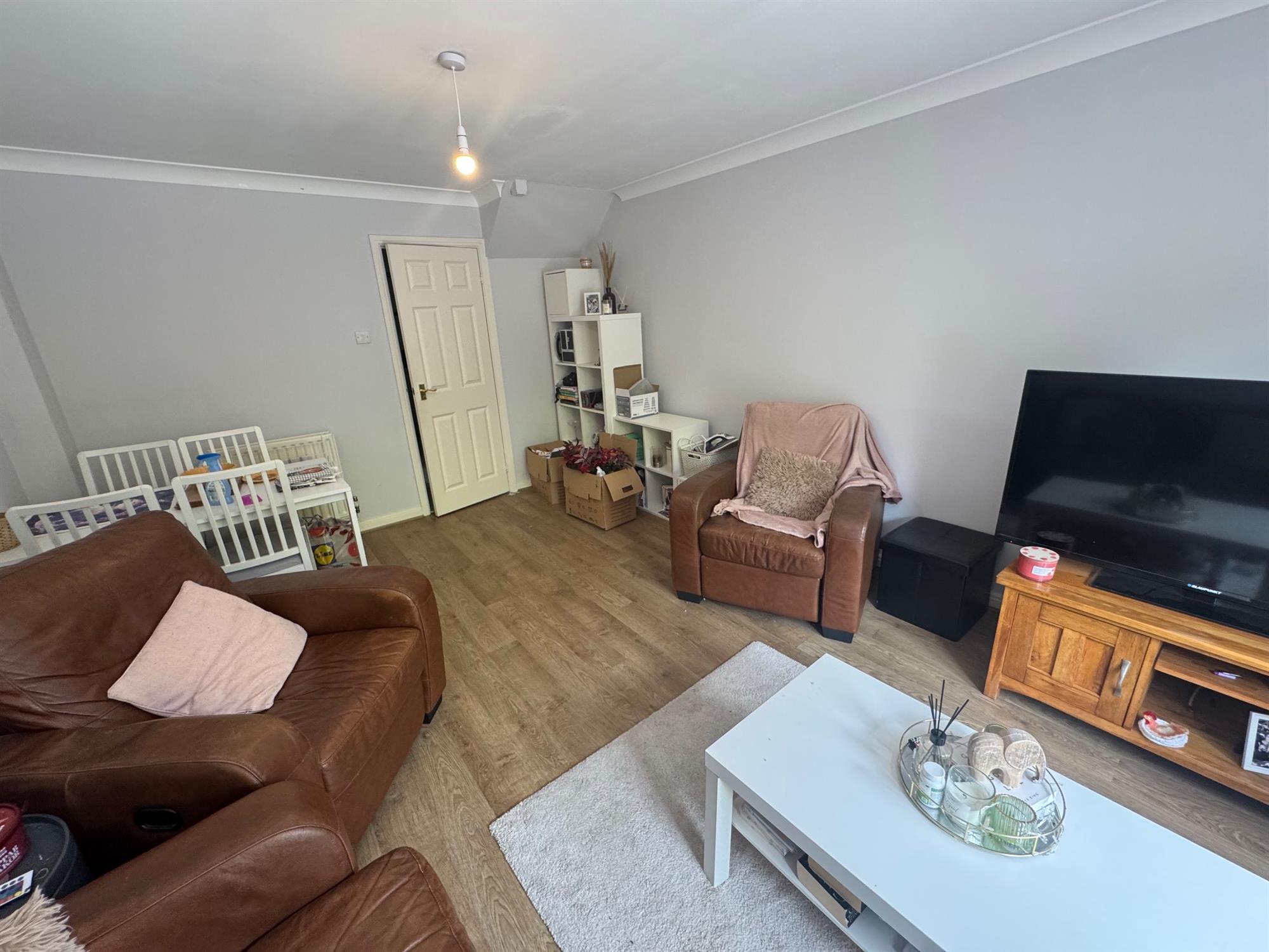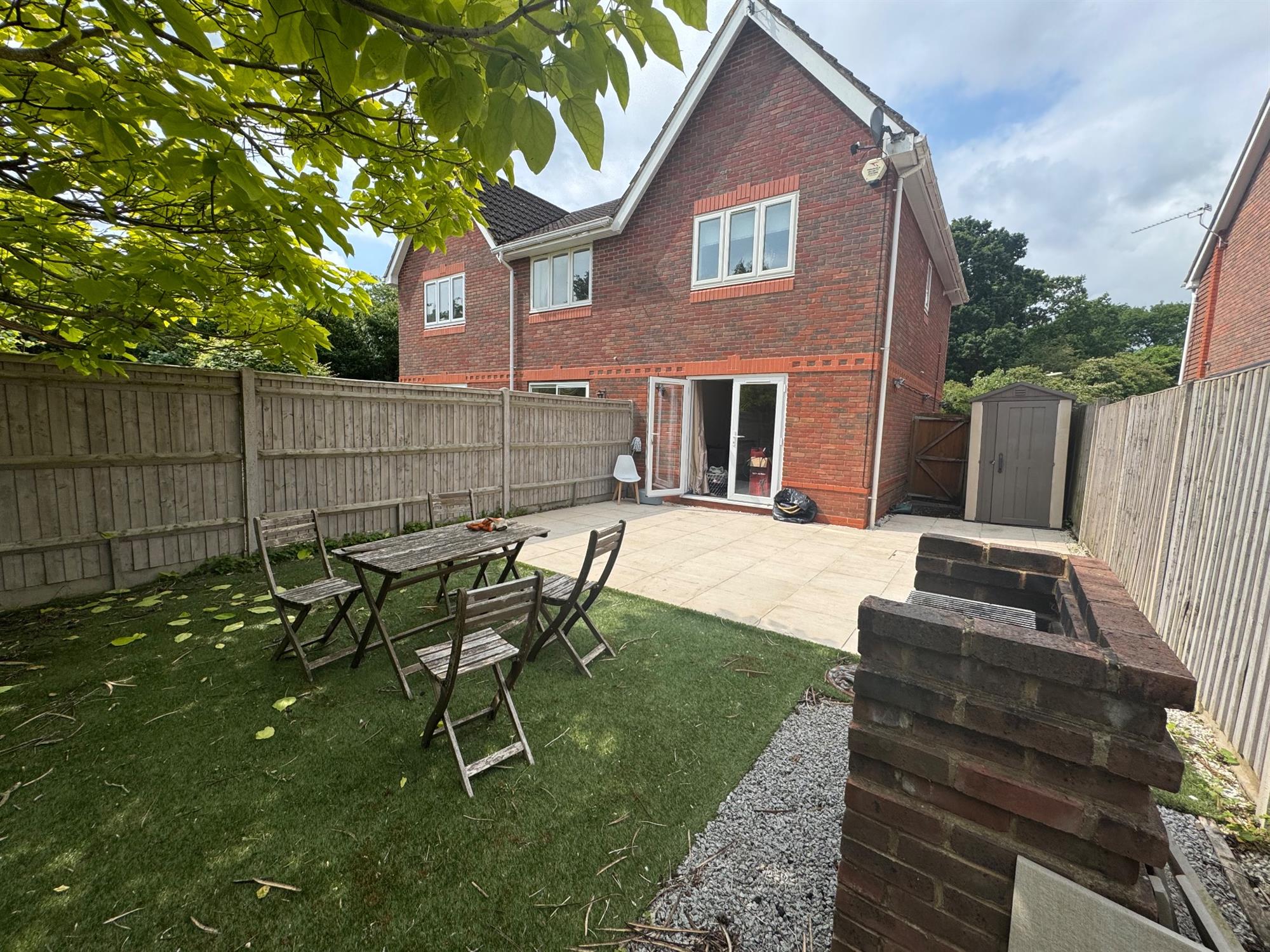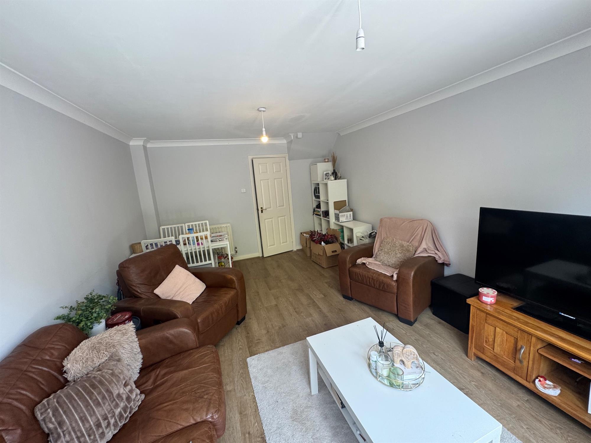 This modern two-bedroom end-of-terrace house, with a driveway, is situated in a popular residential area of Chandlers Ford.