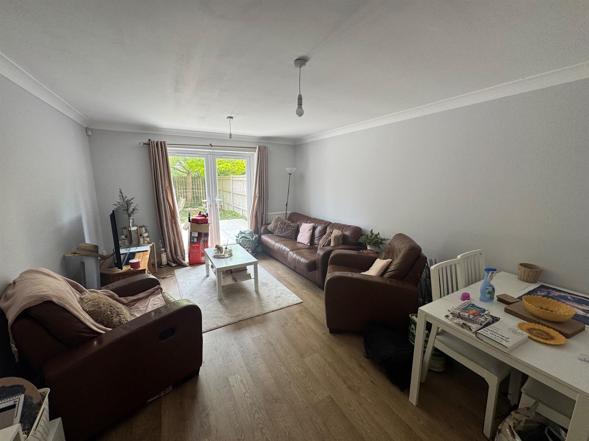 LOUNGE: Large, light and airy living room with space for a dining table and patio doors to garden.