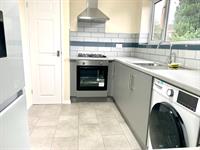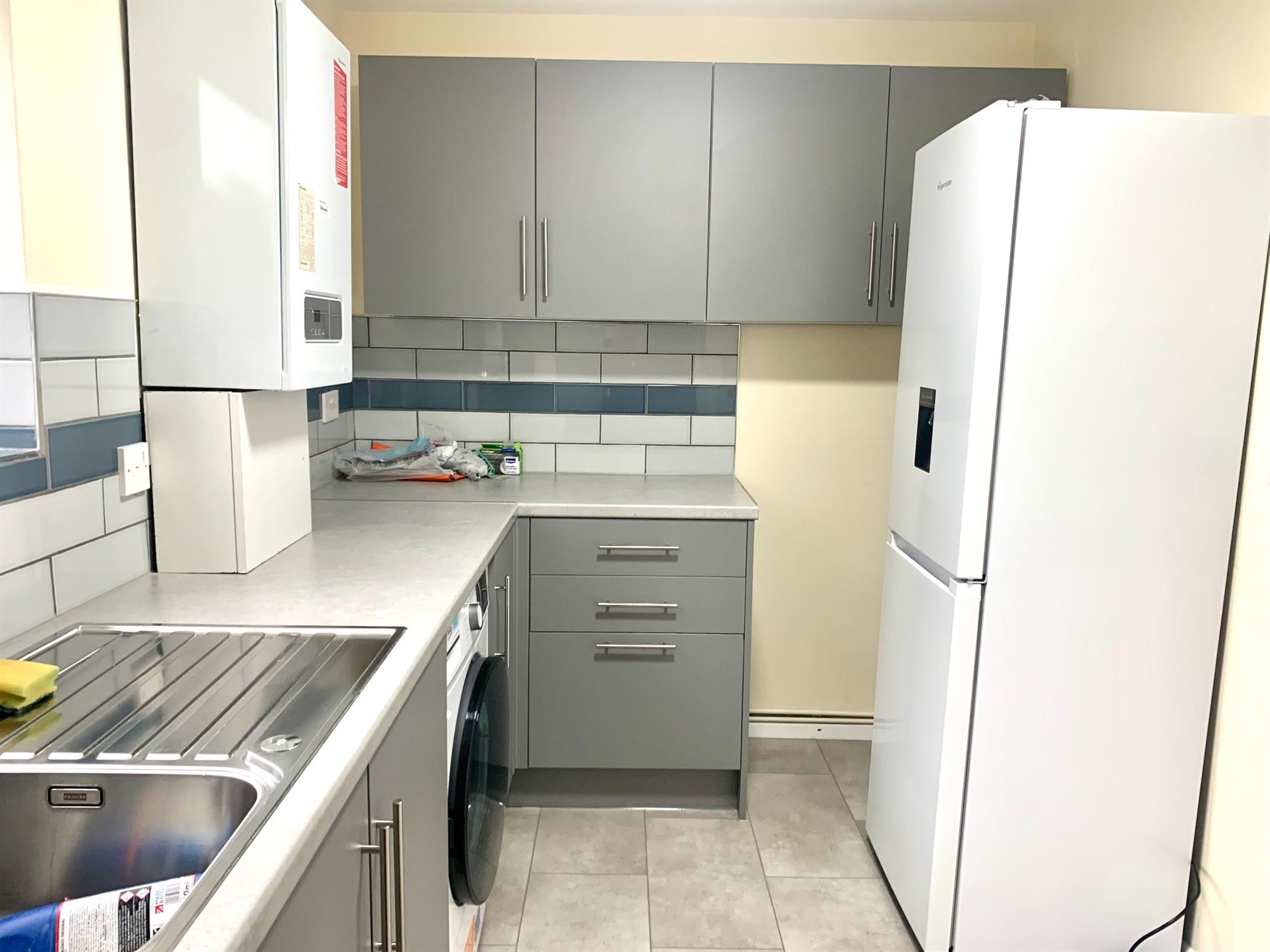 KITCHEN – Good size newly fitted kitchen with various grey gloss wall and base units with new appliances consisting of gas hob, electric oven, extractor fan over hob, washing machine and fridge/freezer. Further features are built in storage cupboard, combi boiler, ceramic tiled flooring and large window looking over neighbours garden.