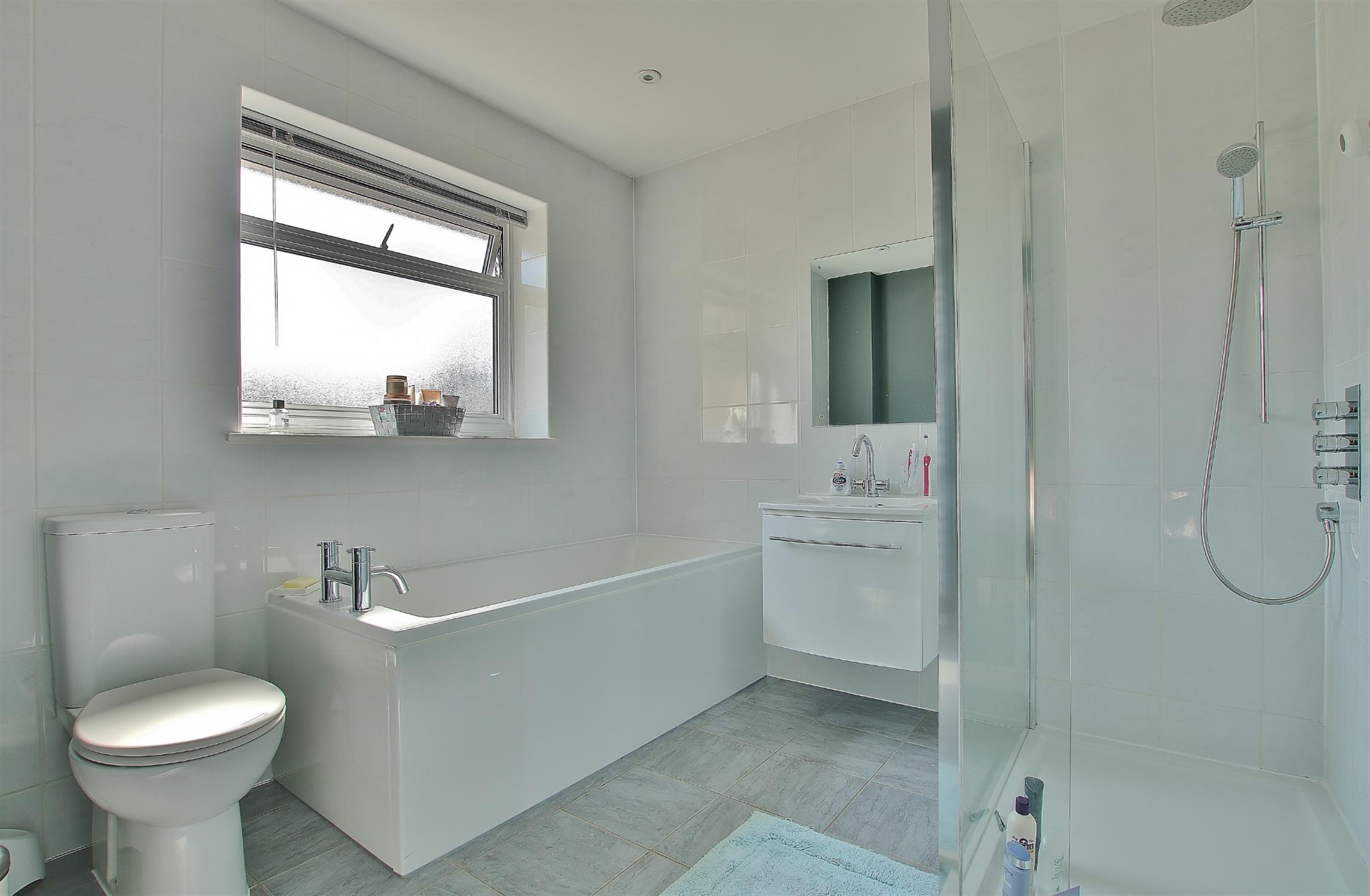 Fitted with an attractive modern suite comprising panel bath, walk-in tiled shower cubicle, low level WC, wash hand basin, part tiled walls, tiled floor, extractor fan, heated towel rail and double glazed window to the rear.