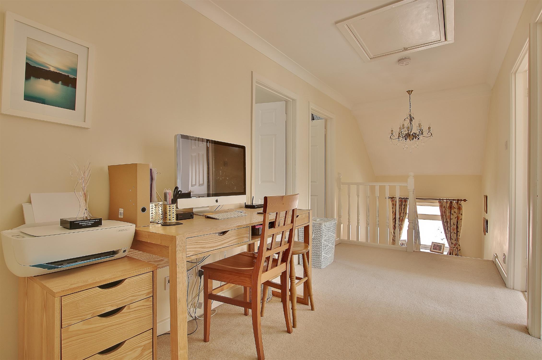 Spacious landing with study area. Ladder giving access to the part boarded and insulated loft space. Radiator. Double glazed window to the side. Built- in linen cupboard.