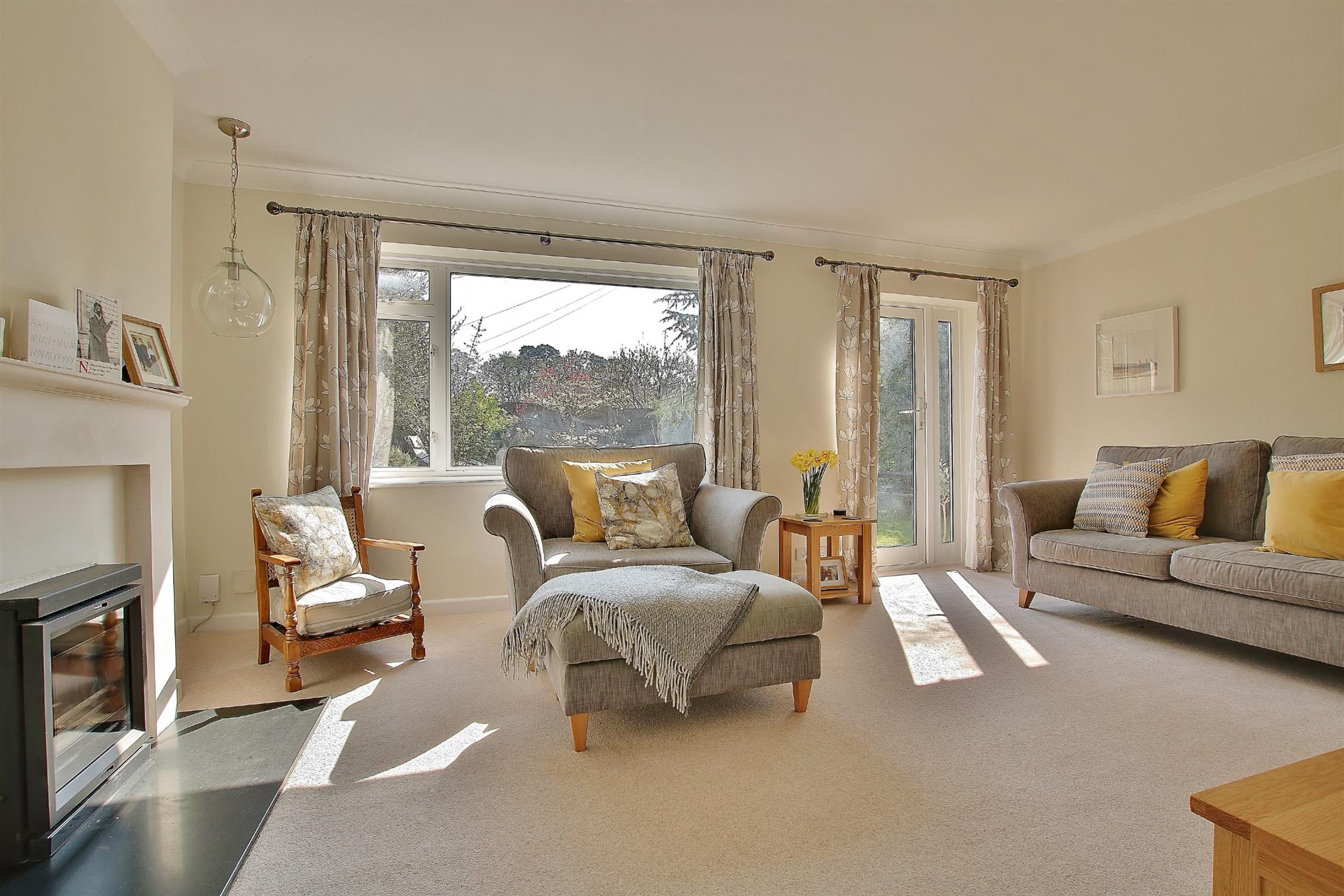 SITTING ROOM:Radiator. Feature limestone fireplace with inset Stovax wood burning stove, double glazed window and door giving access to the rear garden.