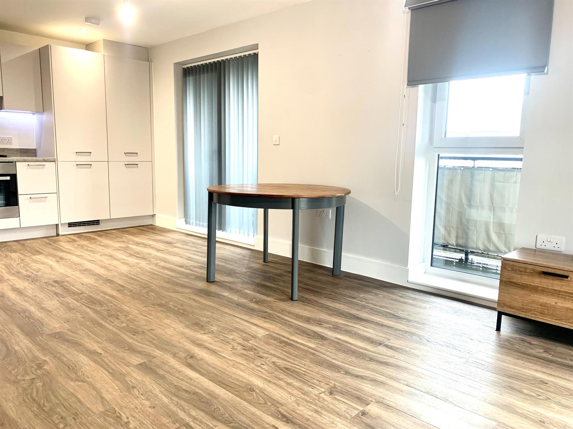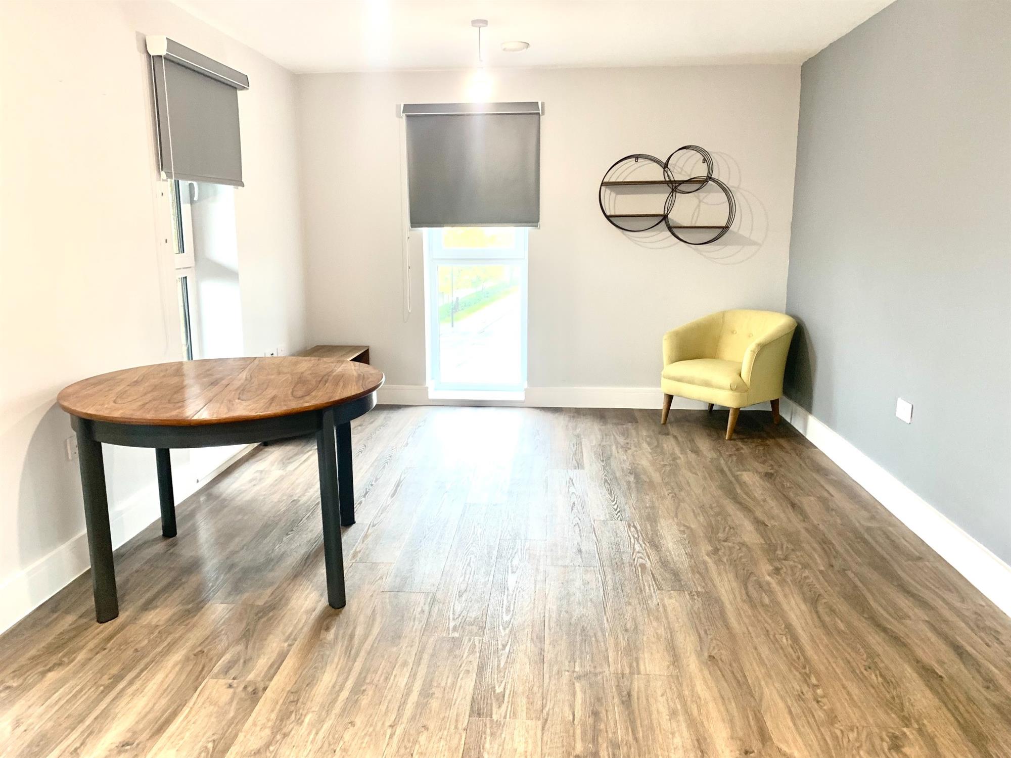 Laminate flooring with dual aspect views making this rooms bright and airy. French doors lead to the balcony. Furniture can stay or go is an extendable table, TV unit and easy chair.