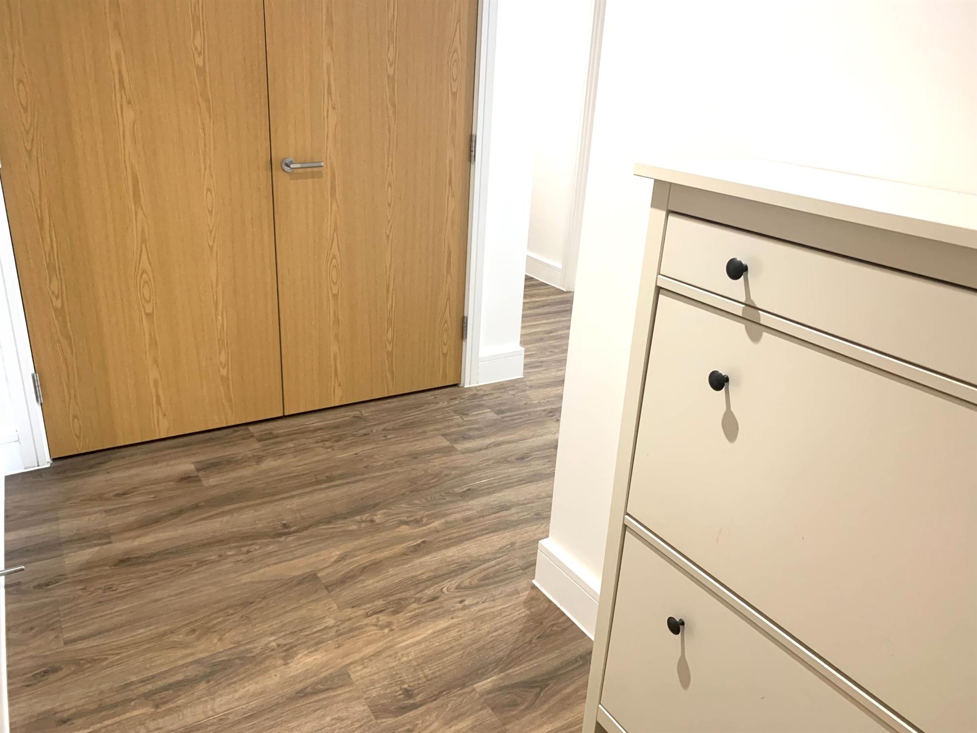 APARTMENT ENTRANCELaminate flooring with doors to majority of rooms and large cupboard off housing washer/dryer and storage.