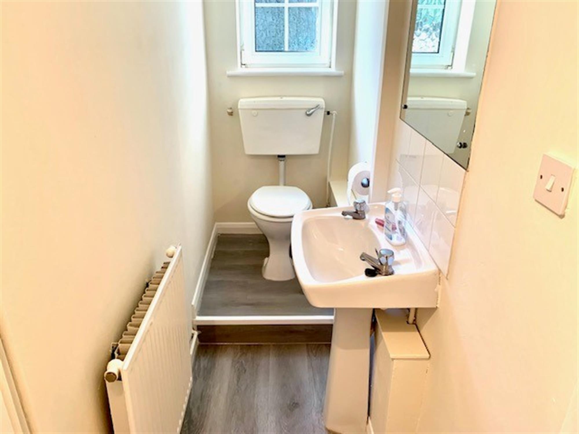 CLOAKROOMToilet and basin. Window to rear.