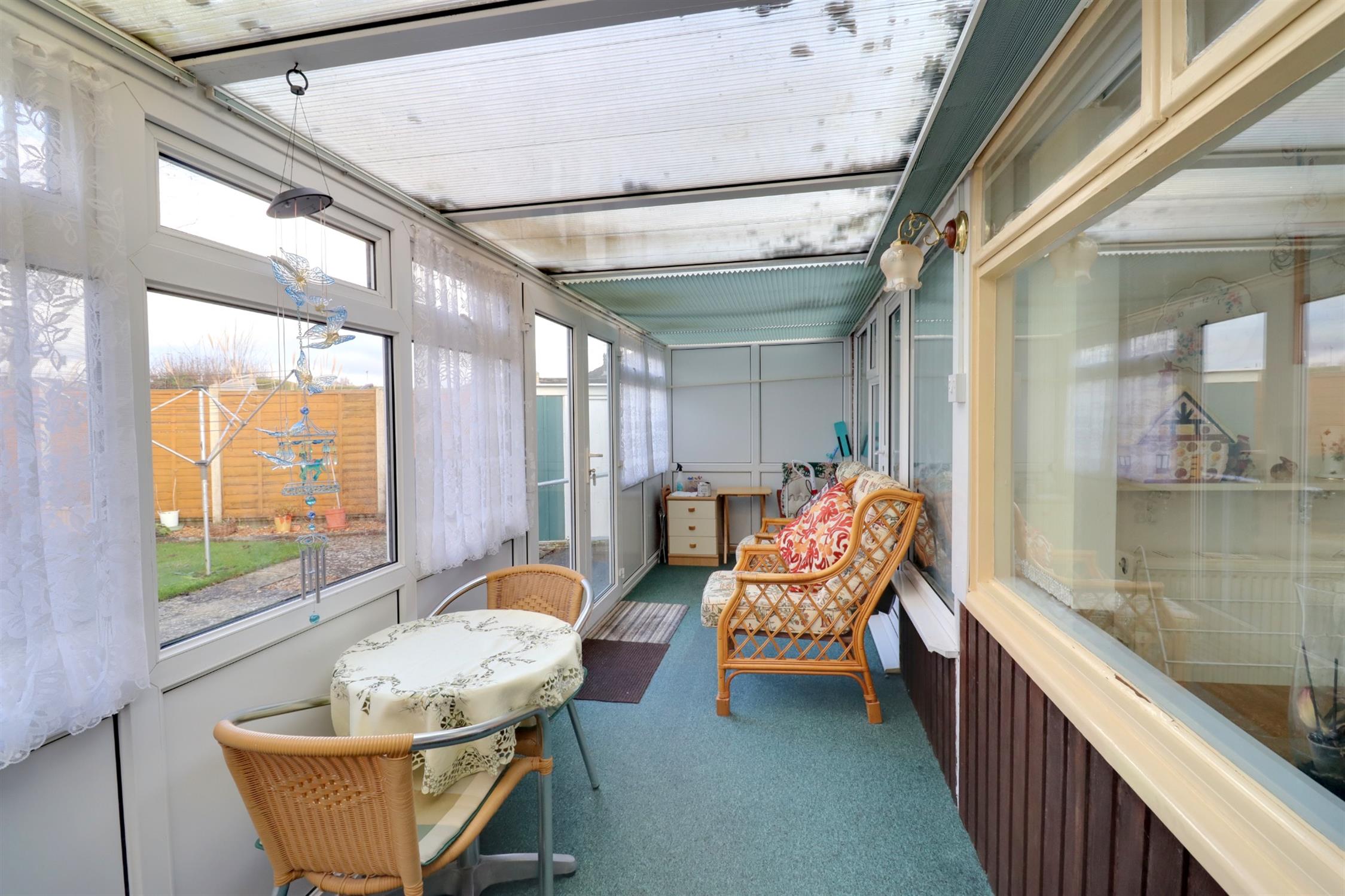 Rear aspect double glazed windows and double glazed French doors leading to the rear garden, polycarbonate style roof.