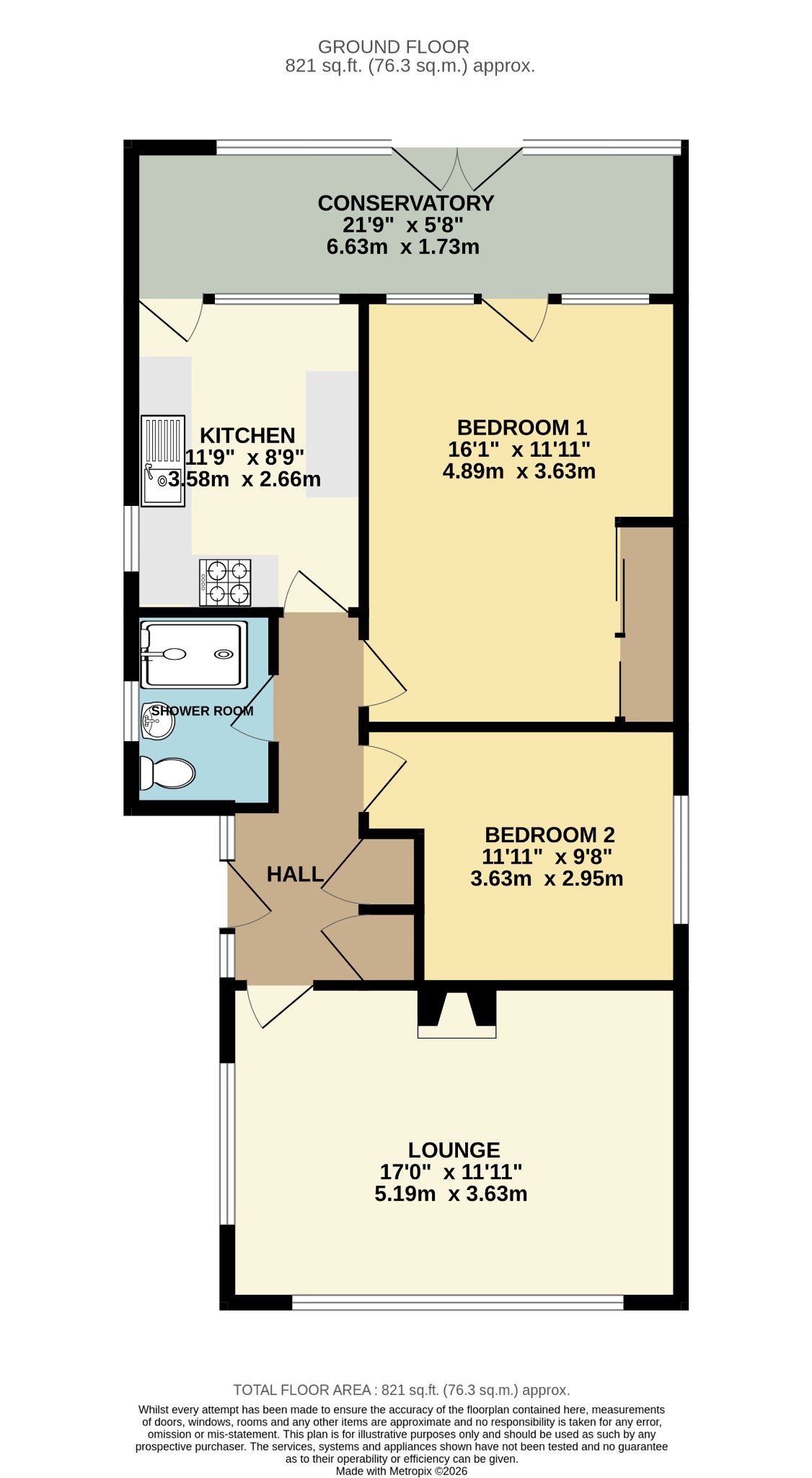 HallVia side aspect double glazed door with double glazed side panels, radiator, two built-in storage cupboards, access to the loft, doors to bedrooms, shower room, kitchen and lounge.