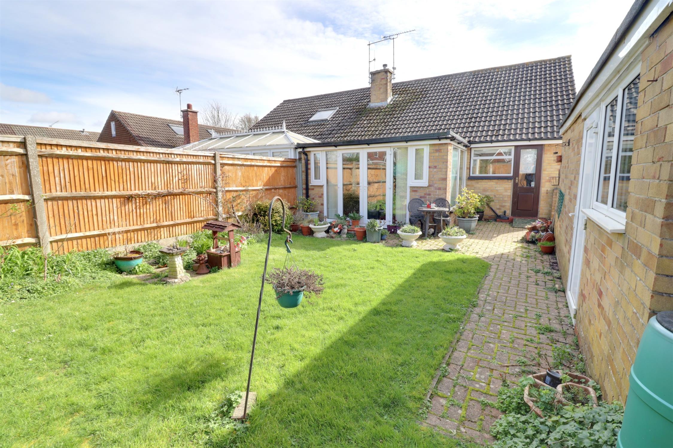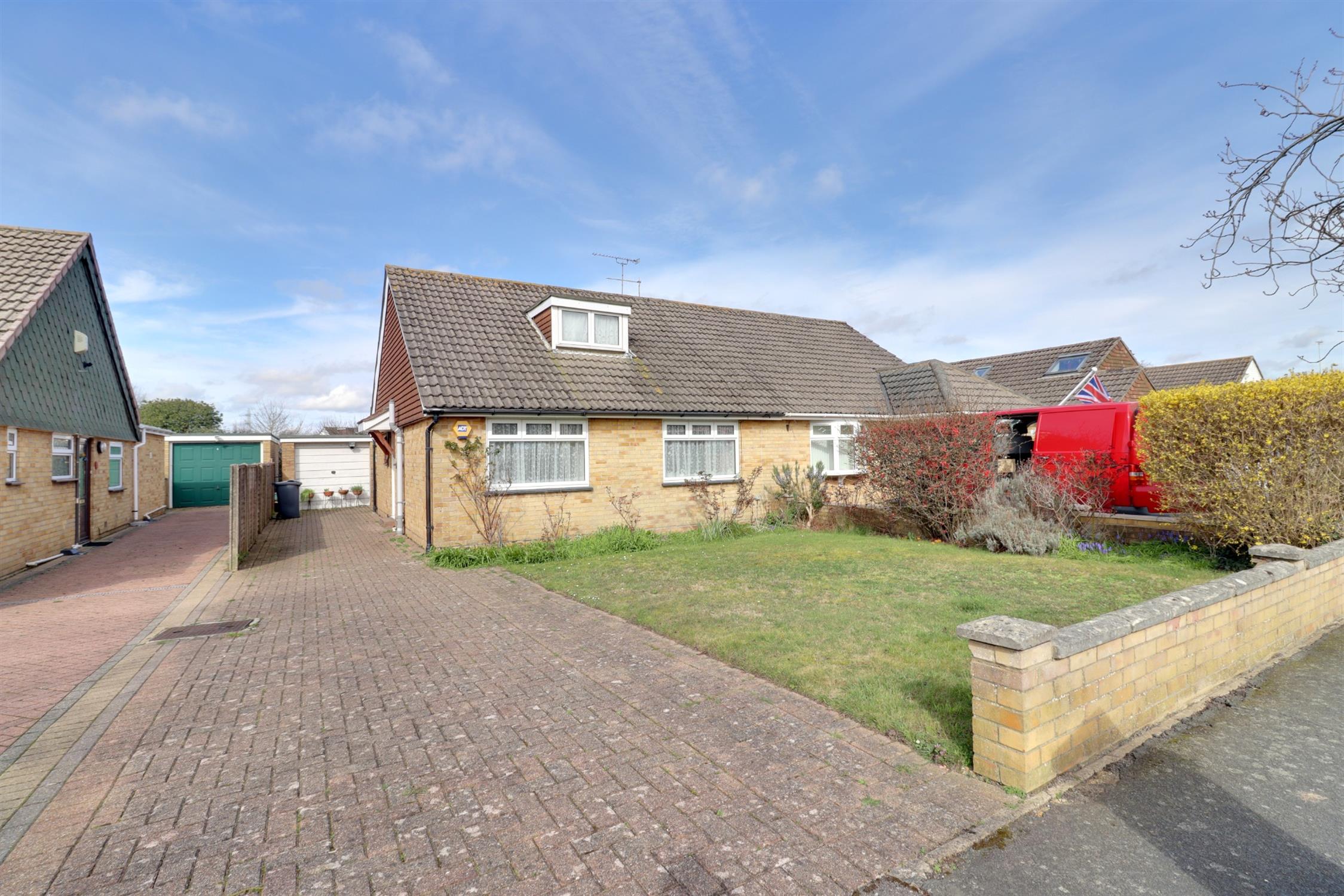 An extended two double bedroom semi-detached bungalow requiring some modernisation and redecoration situated within the ever popular Berg estate. Offered with vacant possession, the accommodation comprises: hallway, lounge leading into the dining room, kitchen, shower room, two double bedrooms, large block paved driveway leading to a detached garage and well-tended front and rear gardens. The property offers great potential to extend (subject to planning) into the large partially boarded loft space with Dorma window.
