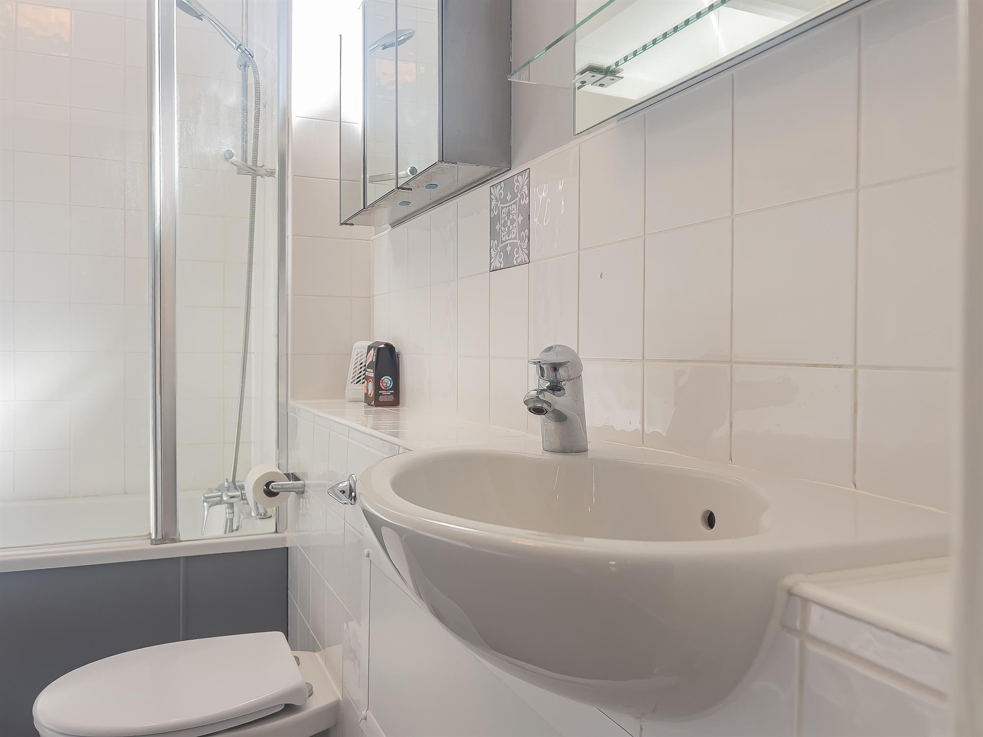 Obscure glazed window to front aspect. Comprising white suite of panelled bath with glazed shower screen and shower fitted over. Concealed flush WC. Wash hand basin with mixer taps. Complementary tiling. Heated towel radiator.