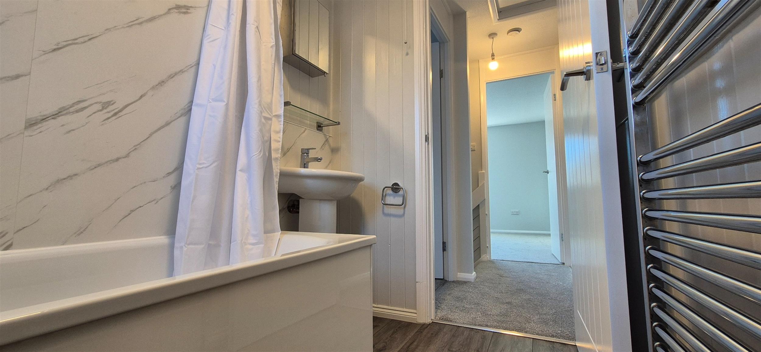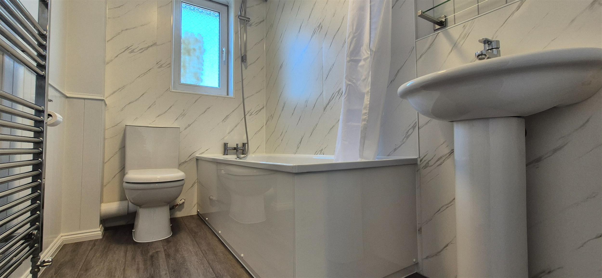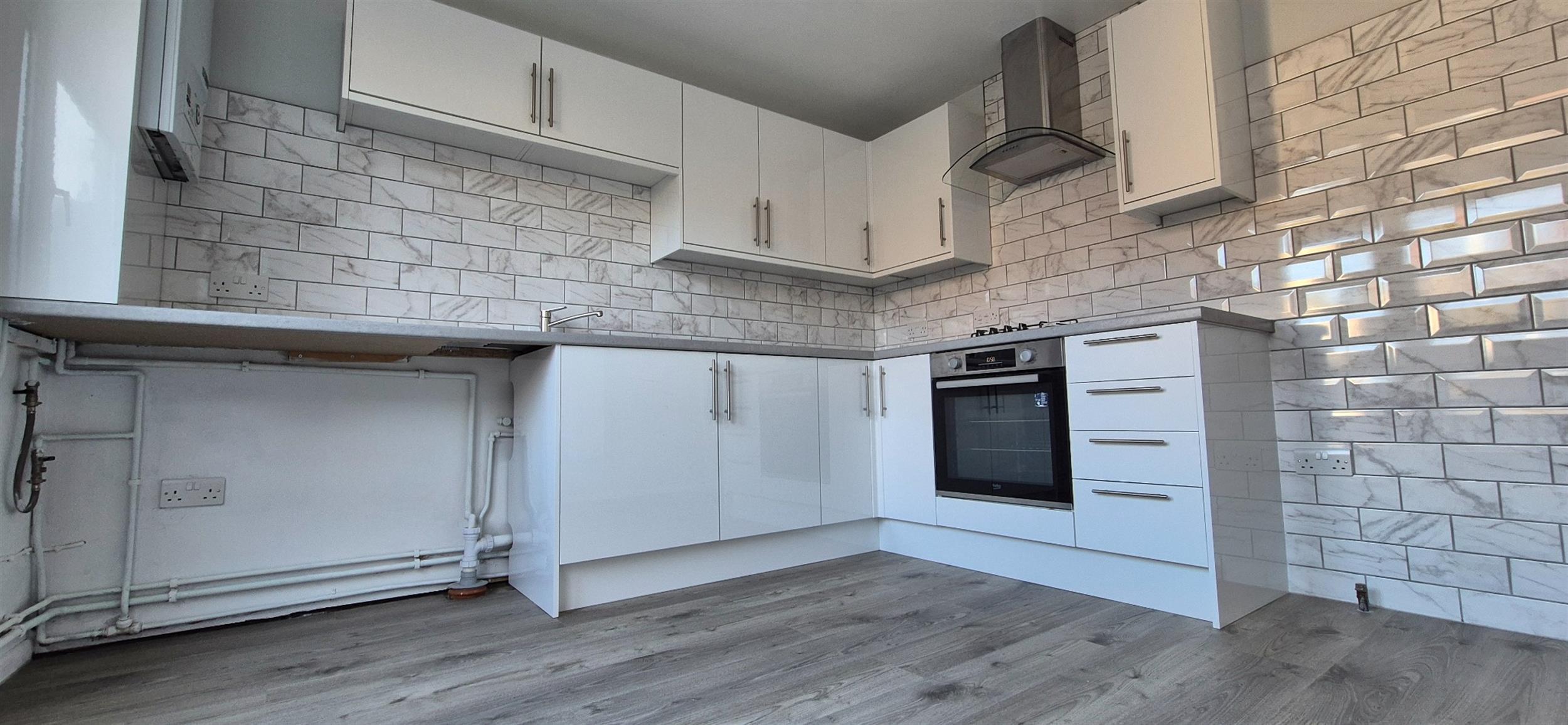 Kitchen/breakfast room has been newly installed to include new flooring and incorporates gas hob and electric oven with spaces for fridge/freezer, washing machine and dishwasher. Large window faces the rear with back door to garden. The kitchen has enough room for a table and chairs and handy understairs cupboard for storage.