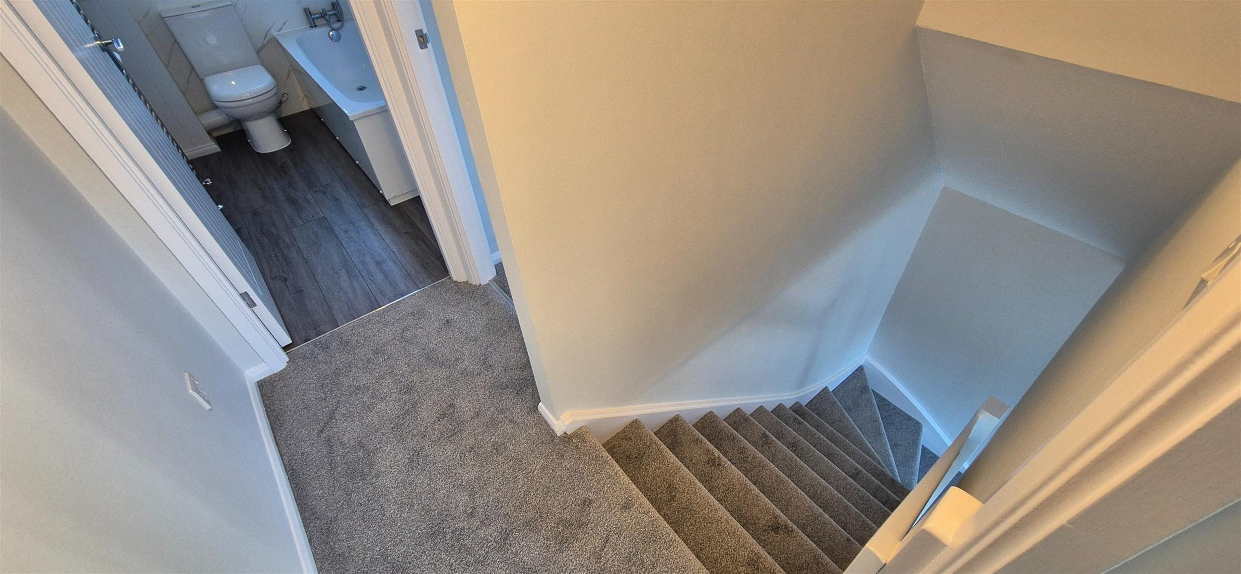 Stairs to first floor are newly carpeted and leads to landing with doors to all rooms and loft storage.