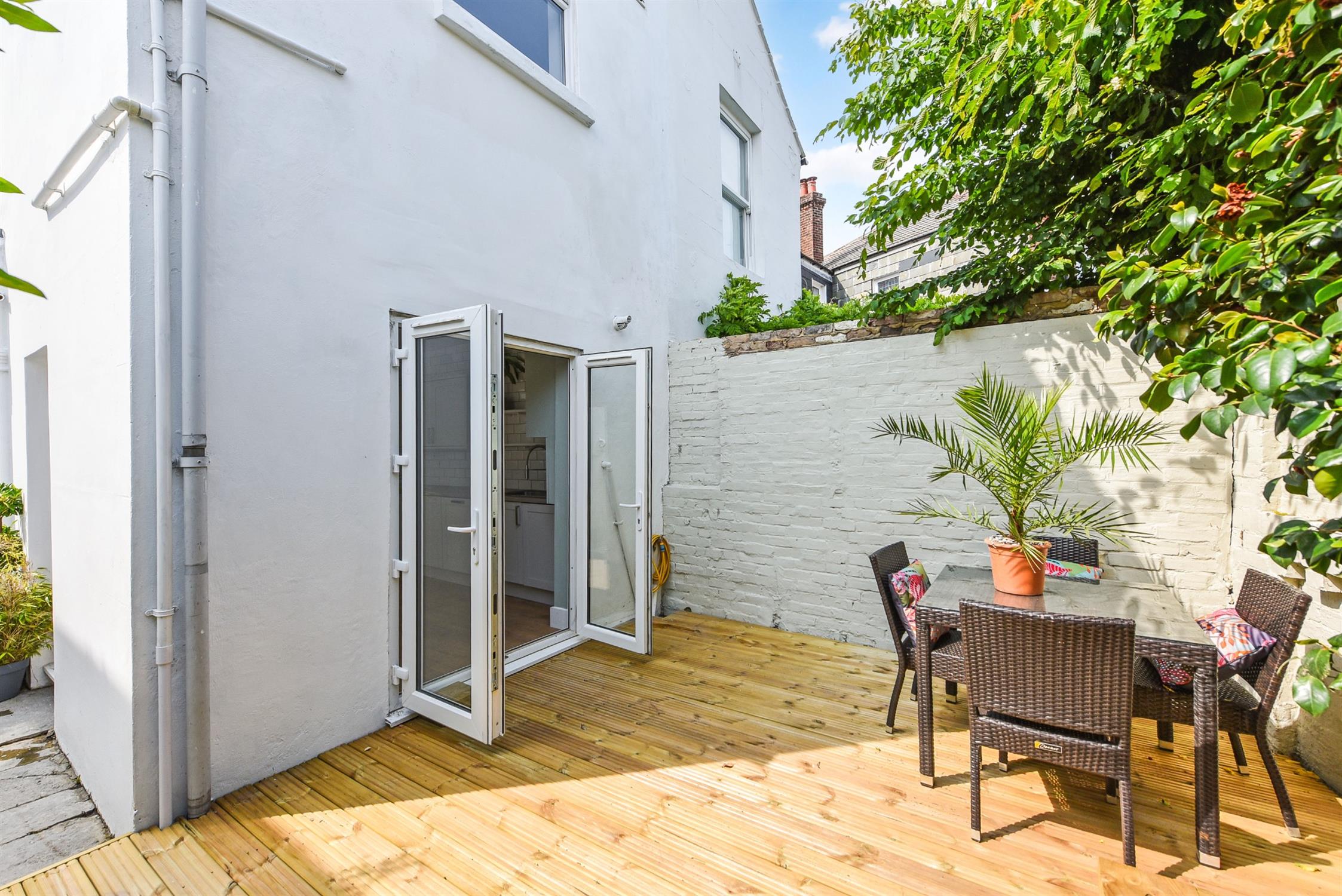 Front - Forecourt with mature hedge. Rear - Wall-enclosed rear garden, decking, patio, mature borders.