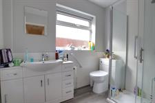 Double glazed obscure window to the side aspect. Smooth ceiling with inset spotlighting. Modern suite comprising shower cubicle, low level WC and wash hand basin. Heated towel rail. Part tiled walls. Grey wood effect flooring.