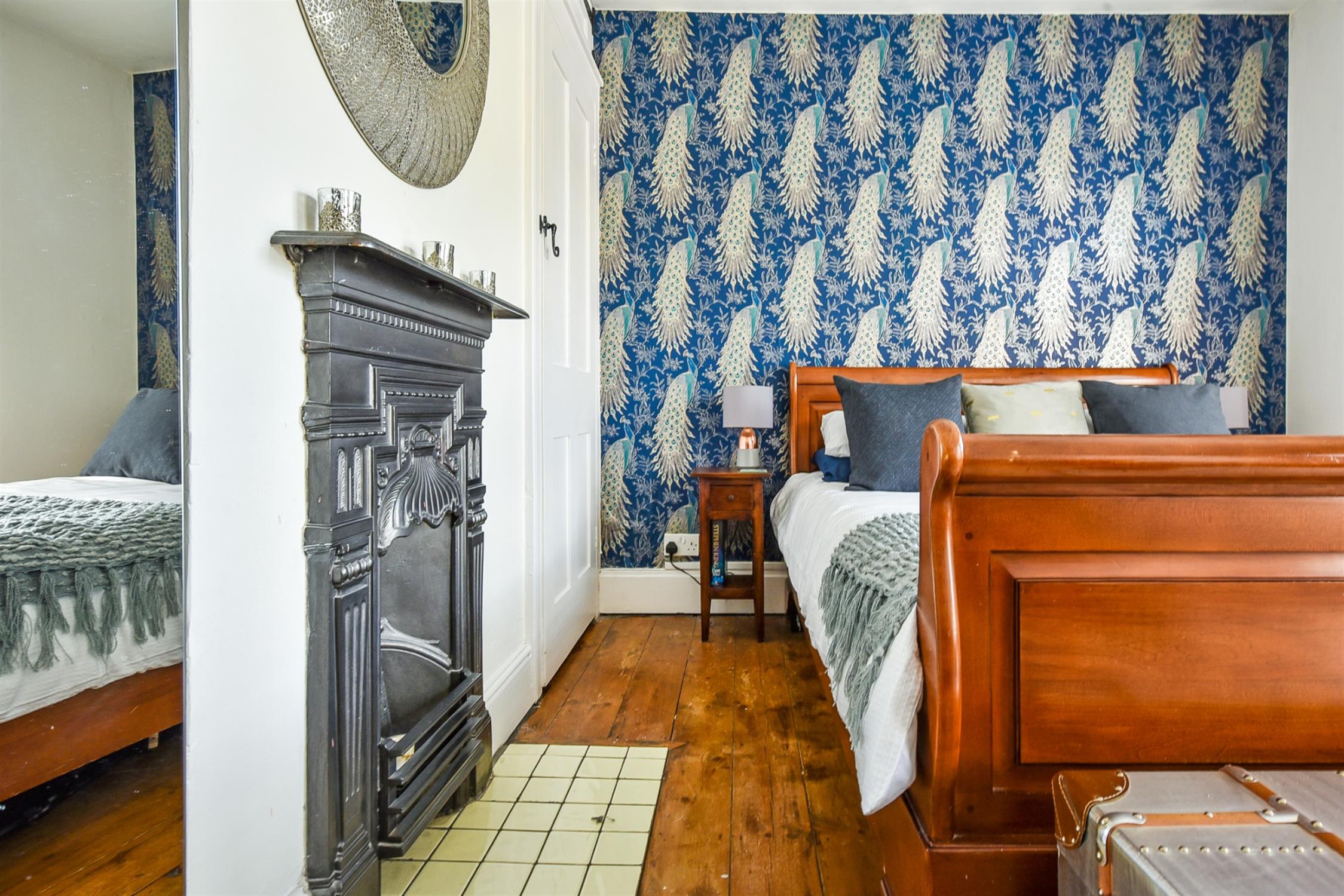 Upstairs, there are two double bedrooms - both of which offer built-in storage and feature fireplaces. The family bathroom is fitted with a shower over bath with glass screen, toilet, handbasin and chrome heated towel rail.