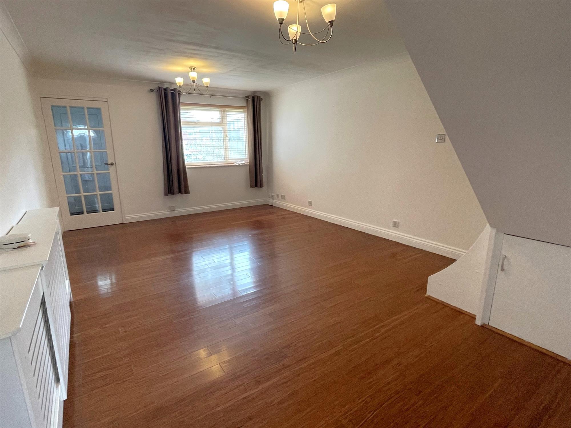Window to front. Stairs to first floor. Understairs storage cupboard. Television point. Solid engineered wood flooring. Radiator with decorative cover.