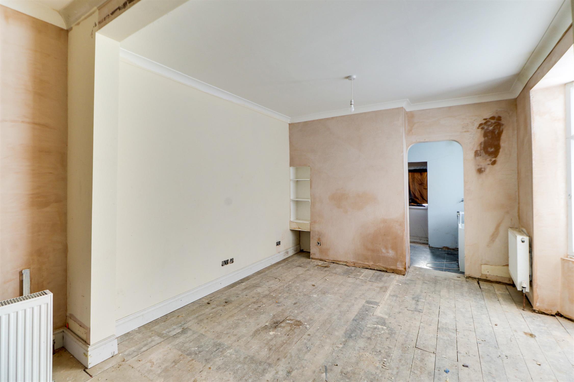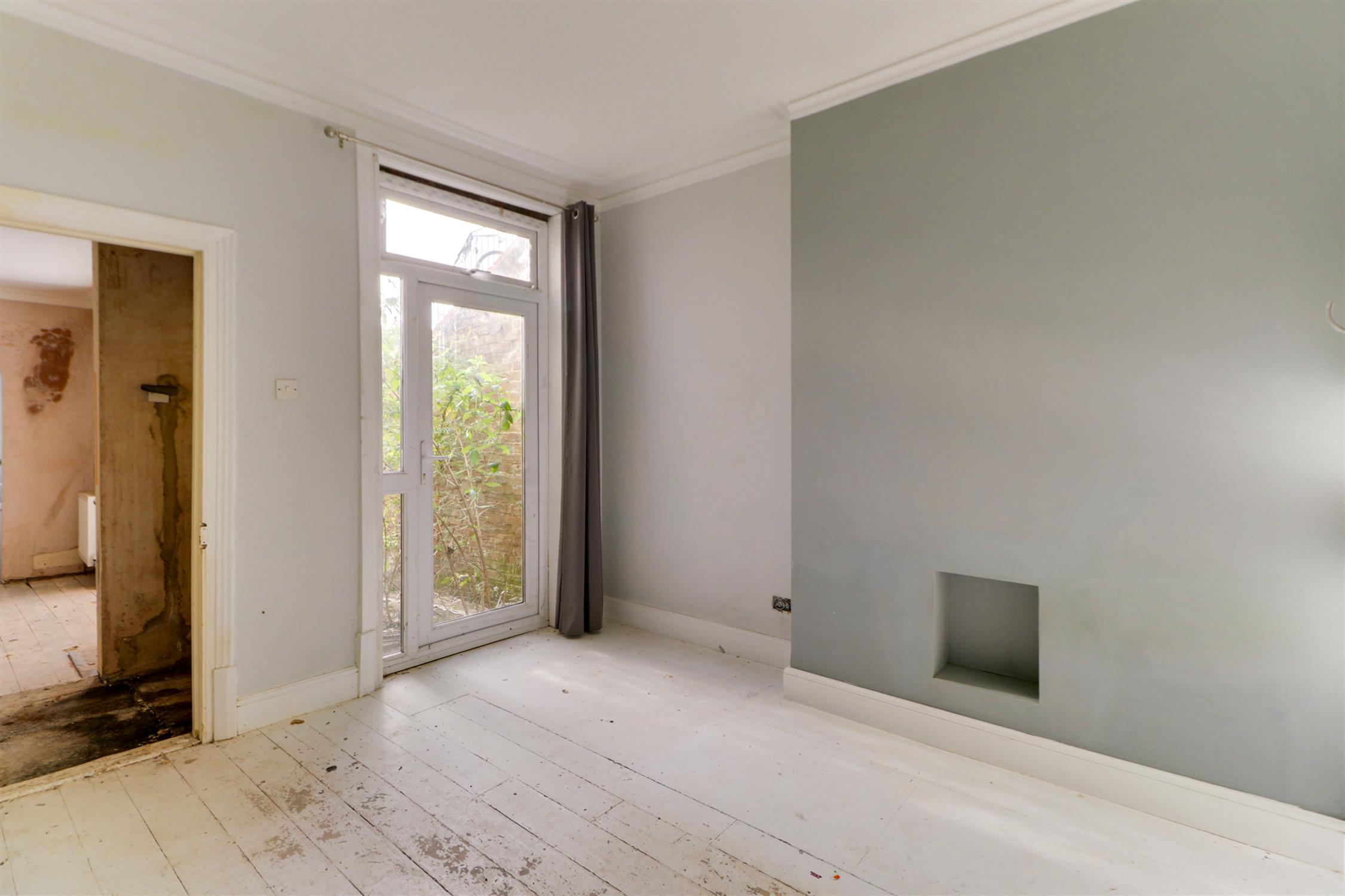 Textured and coved ceiling,UPVC double-glazed window and door to garden, storage cupboard, radiator, exposed floorboards.