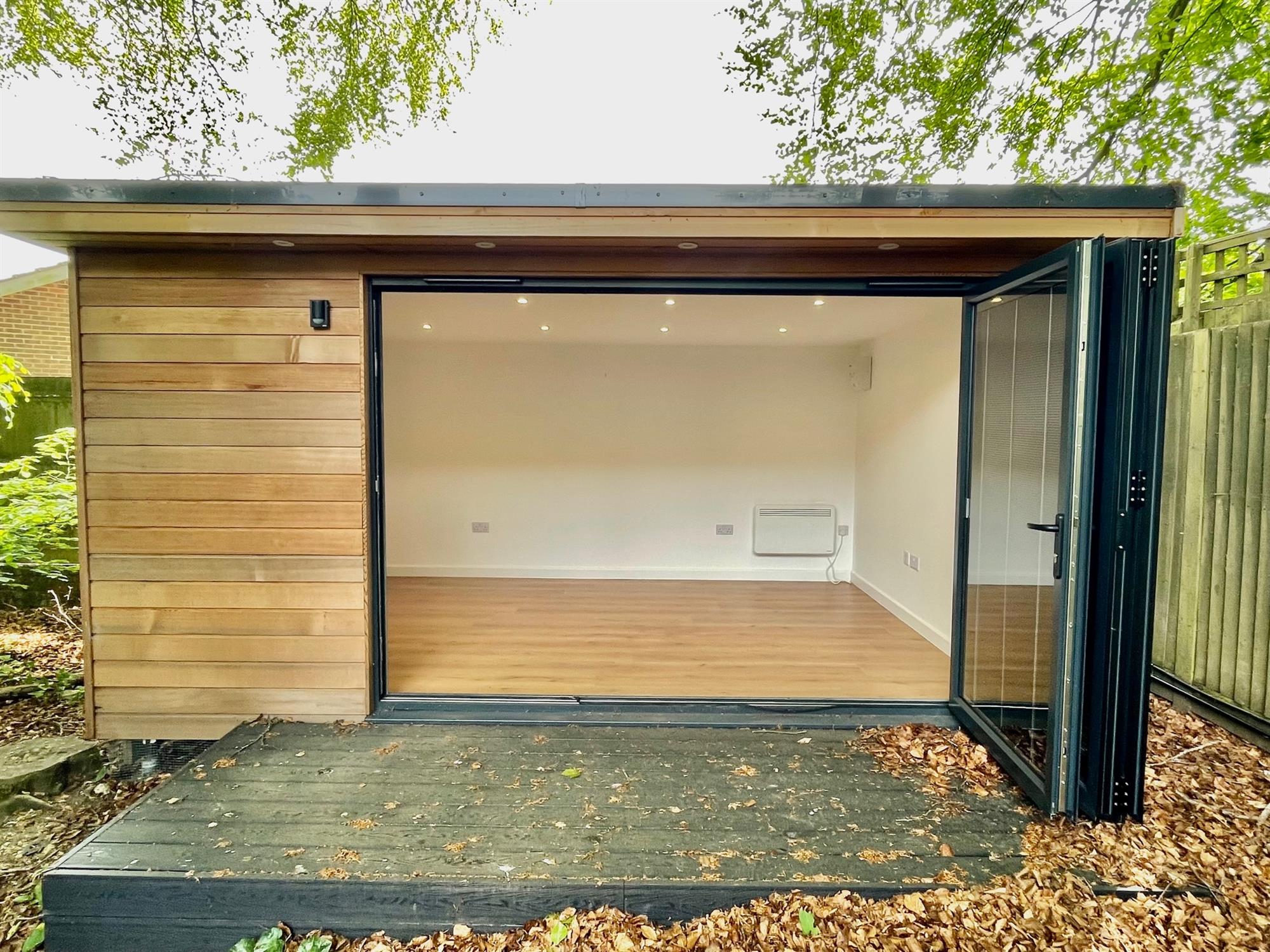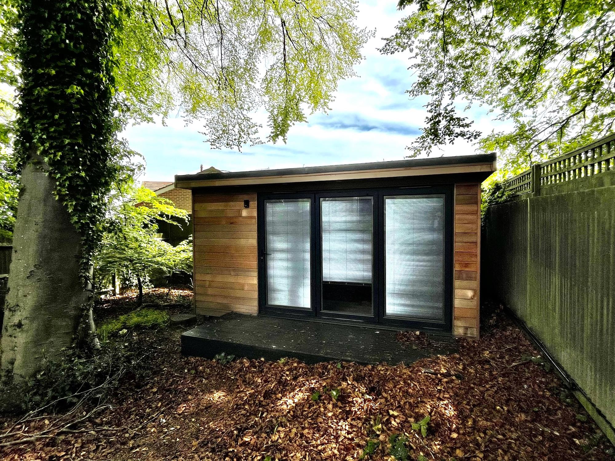 Outside, the garden is majority laid to lawn with artificial grass and has a terraced seating area. There is also a timber-built studio in the back garden with power and lighting which makes for an ideal home office. Finally, the property further offers a useful carport and additional parking.