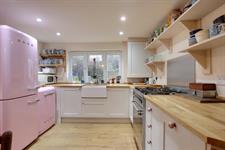 Double glazed window overlooking the rear garden and additional window to the side aspect. Smooth ceiling with inset spotlighting and beams. Wall and base units with contrasting worktops. Butler sink. Freestanding cooker to remain. Space for fridge/freezer and dishwasher. Radiator. Wood effect laminate flooring.