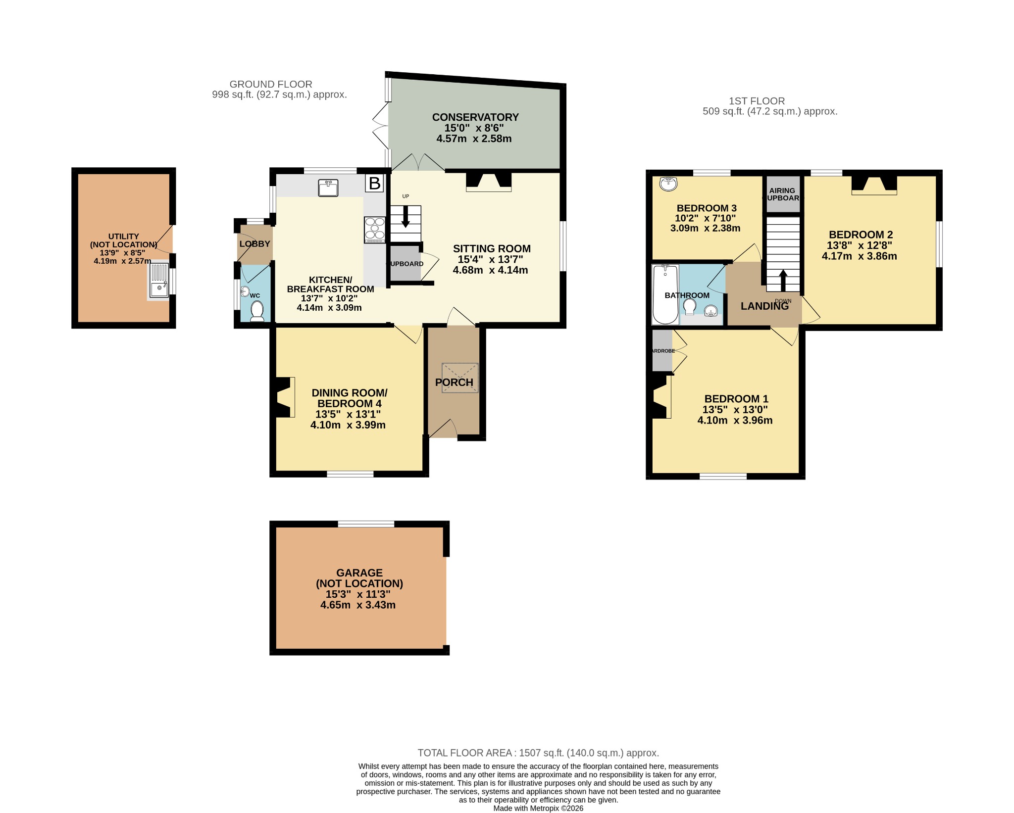 Double glazed window to the rear aspect and sash window to the side aspect. Smooth ceiling. Airing cupboard. Feature cast iron fireplace. Radiator. Part exposed floorboards.