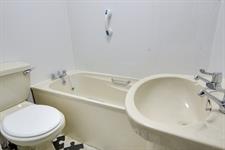 BATHROOM - bath, hand basin, WC and wall mounted mirrored cabinet