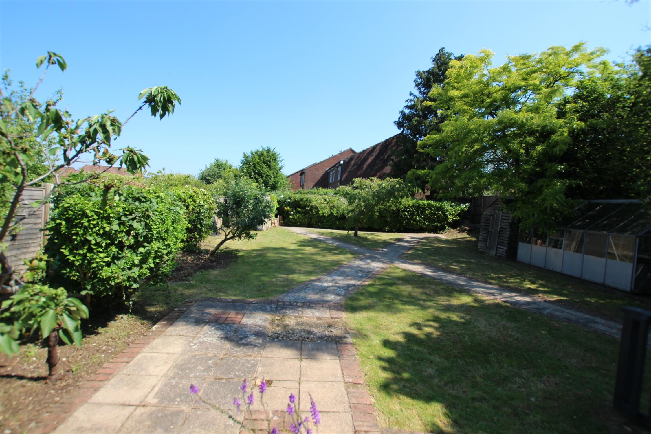 Private garden measuring approximately 84ft, bordered by fencing and mature hedges offering a high degree of privacy, paved walkways offering easy access across the lawn, established garden including an apple tree, two sheds and a greenhouse.