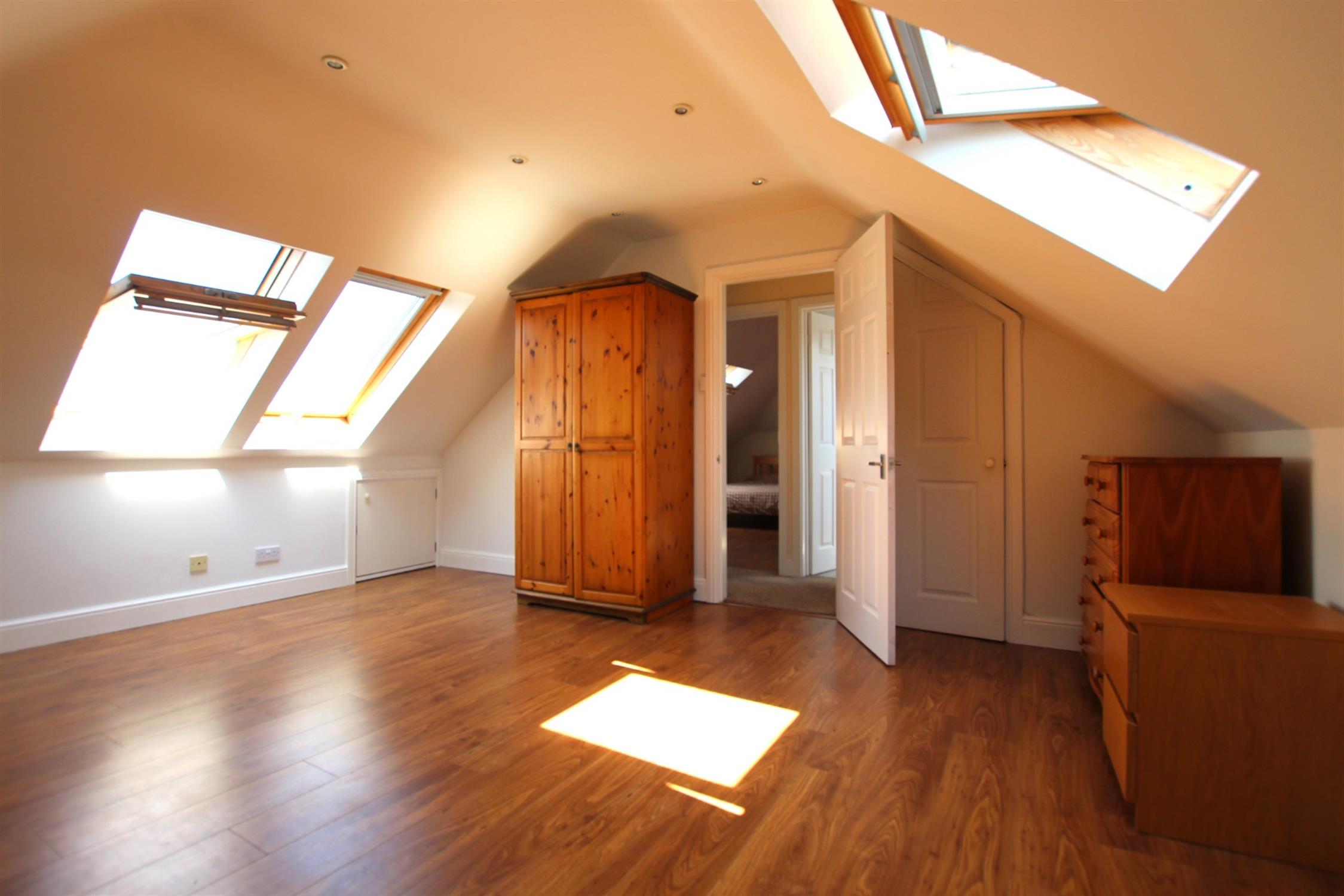 Wood effect laminate flooring, two skylight windows to the westerly aspect and one skylight window to the south easterly, built in wardrobe, eaves storage, smooth skimmed ceiling with spot lighting, radiator, power points and tv point.