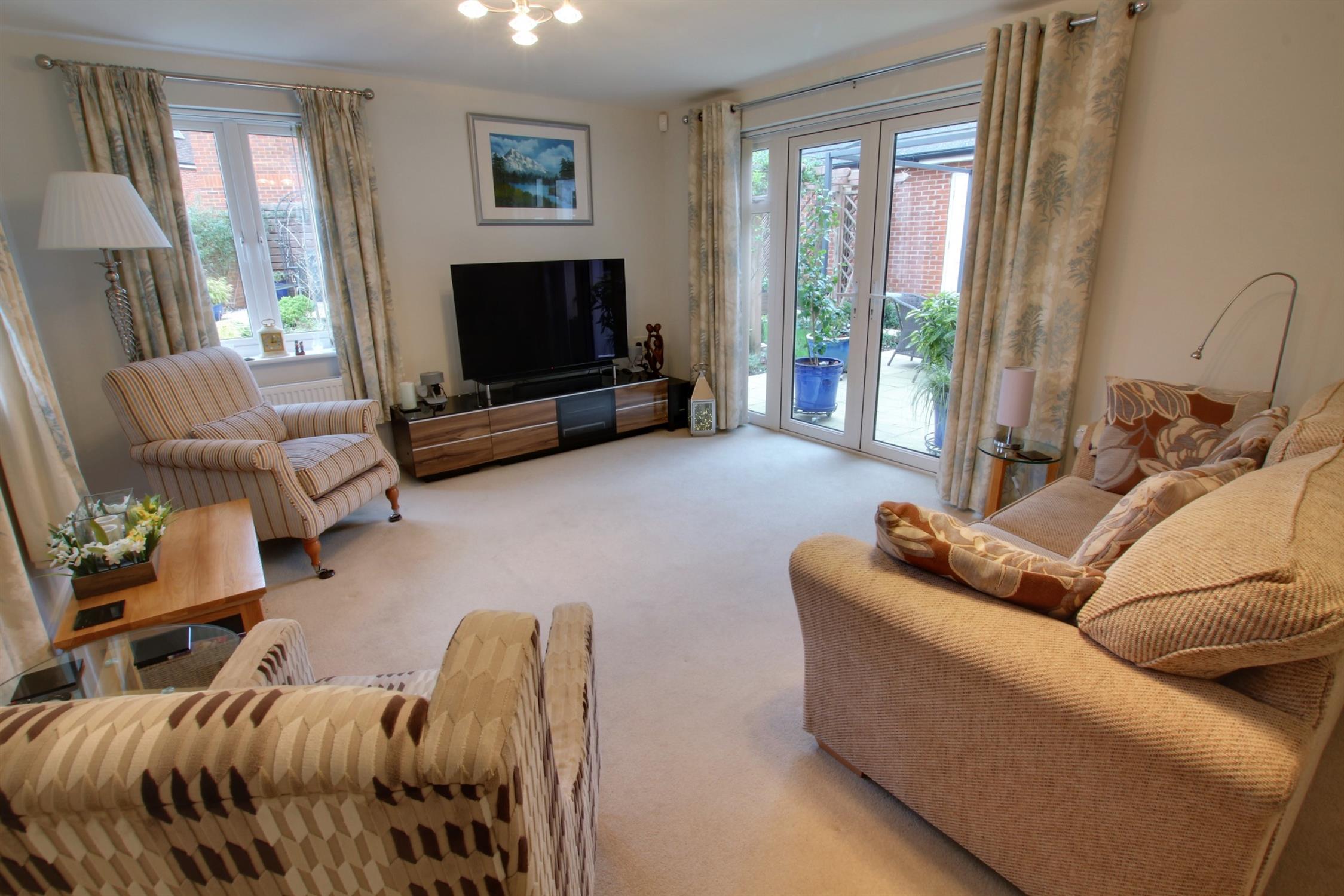 Triple aspect with double glazed windows to rear and both sides, double glazed French doors to garden patio, two radiators.