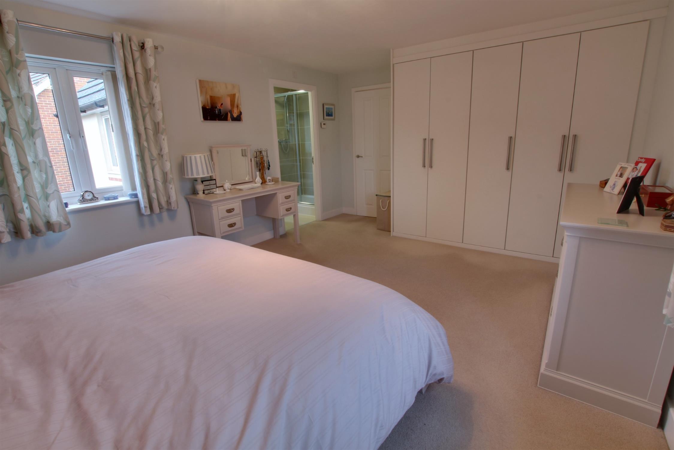 Dual aspect double glazed windows to front and side, radiator, range of built in wardrobes with hanger rails and overhead storage, overstairs storage cupboard.