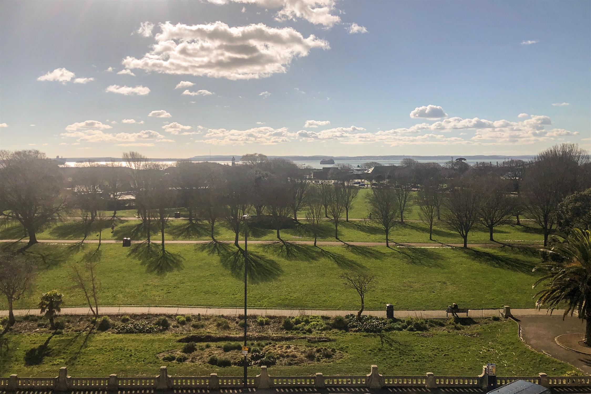 This lovely two bedroom apartment enjoys spectacular views over the tree-lined Southsea Common, into The Solent and beyond to the Isle of Wight. With a lift in the building which leads to the third floor, the apartment has accommodation comprising: a generous lounge/diner and master bedroom with fitted wardrobes, both with south-facing sea views. A second bedroom which is a comfortable double, a fitted Shaker-style kitchen with open shelving, and a contemporary bathroom. The hallway has space enough to fit a study area with built in shelving and desk.