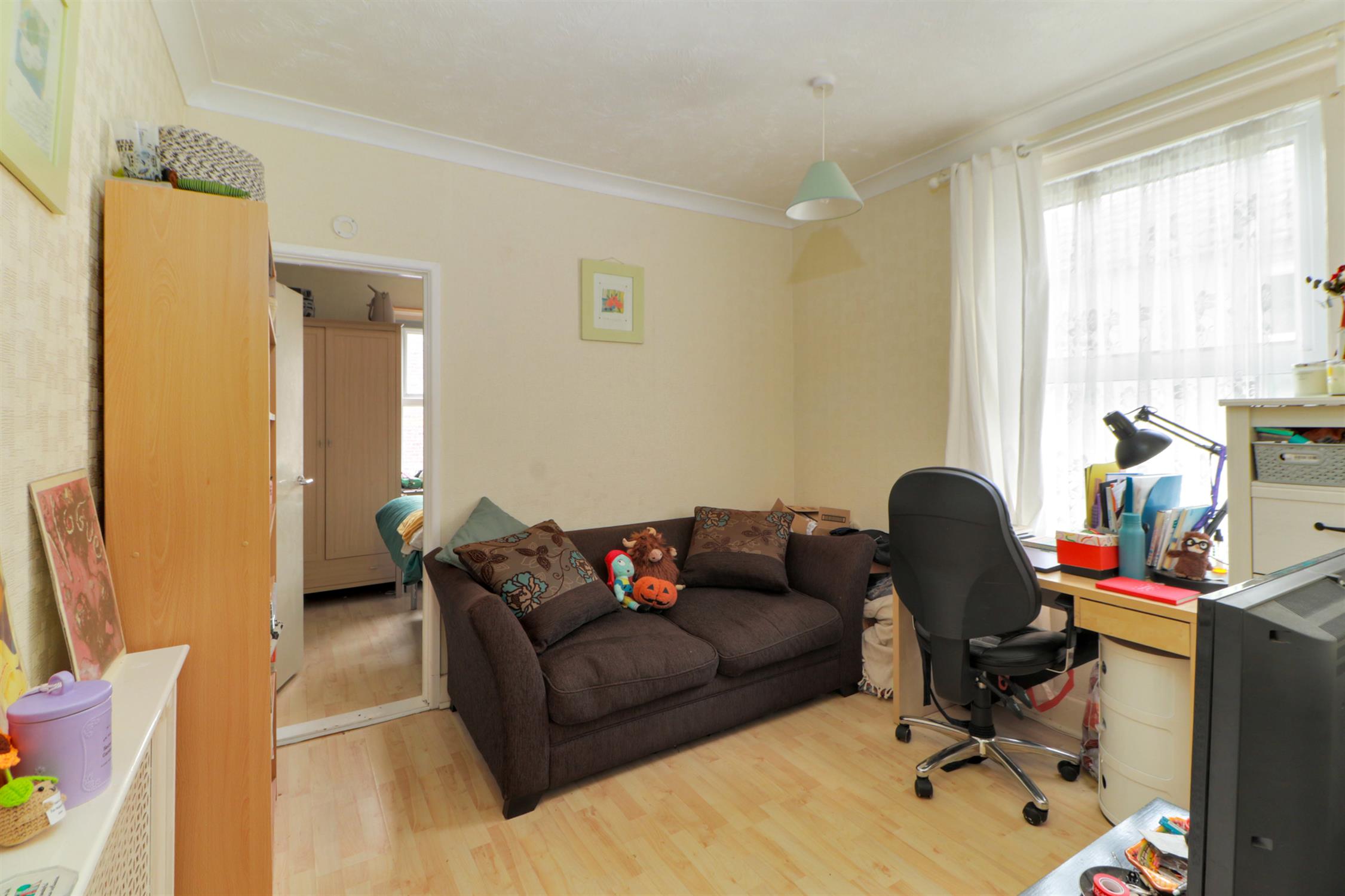 Textured ceiling, ornate cornicing, picture rails, UPVC double-glazed window, radiator and laminate flooring.