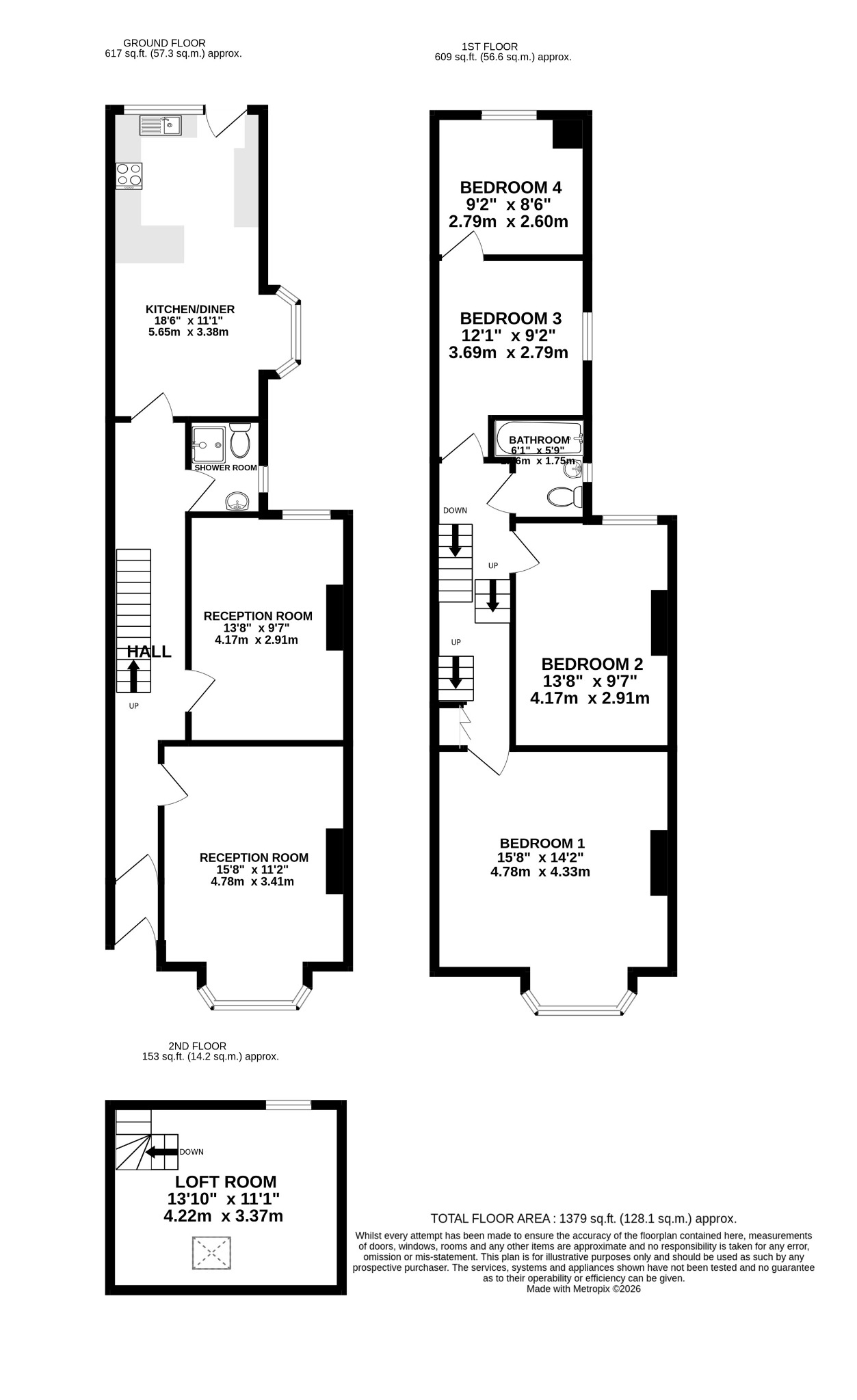 Situated just one road back from Southsea seafront, this well-proportioned three/four bedroom Victorian terraced house offers an abundance of accommodation, adequate for a growing family. The ground floor features a welcoming entrance hall, two reception rooms separated by a partition wall and a fitted kitchen/diner with direct access to the rear garden. A ground floor shower room adds further convenience and flexibility. The first floor provides four bedrooms, along with a family bathroom. Stairs lead to the second floor where a loft room offers additional adaptable space, ideal for use as a study, guest room, or hobby space.