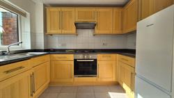 KITCHEN – Modern kitchen with various wall and base units and window to rear. Appliances consist of: Integral washer/dryer, electric hob, electric oven and fridge/freezer.