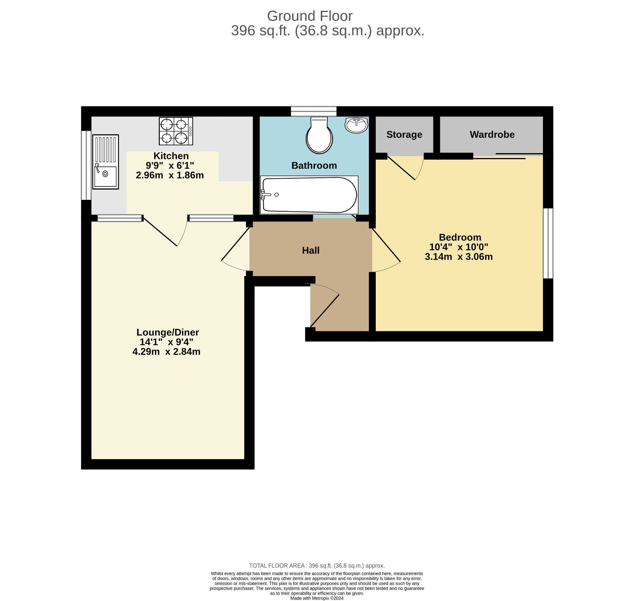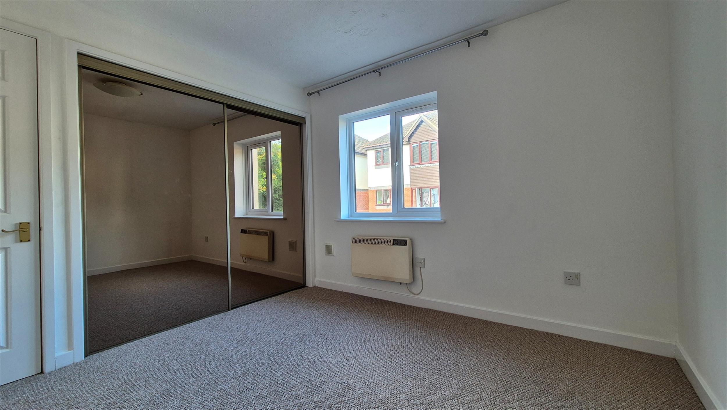 DOUBLE BEDROOM – Carpet continues from hallway into this double bedroom with window to front and has double built in wardrobe and separate cupboard which houses storage and hot water tank.