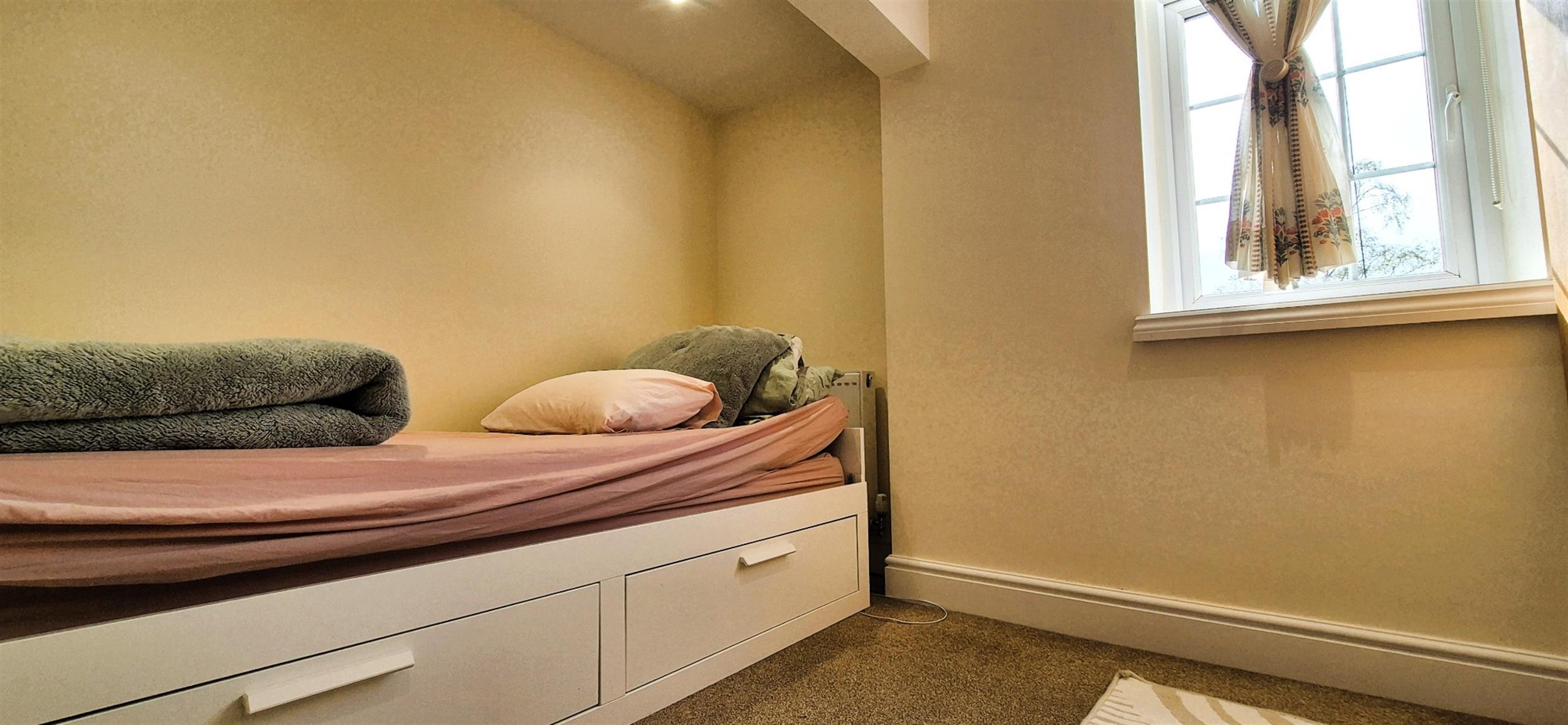 BEDROOM 2 - Carpeted with view to front aspect and built in wardrobe and desk unit. Single in size.
