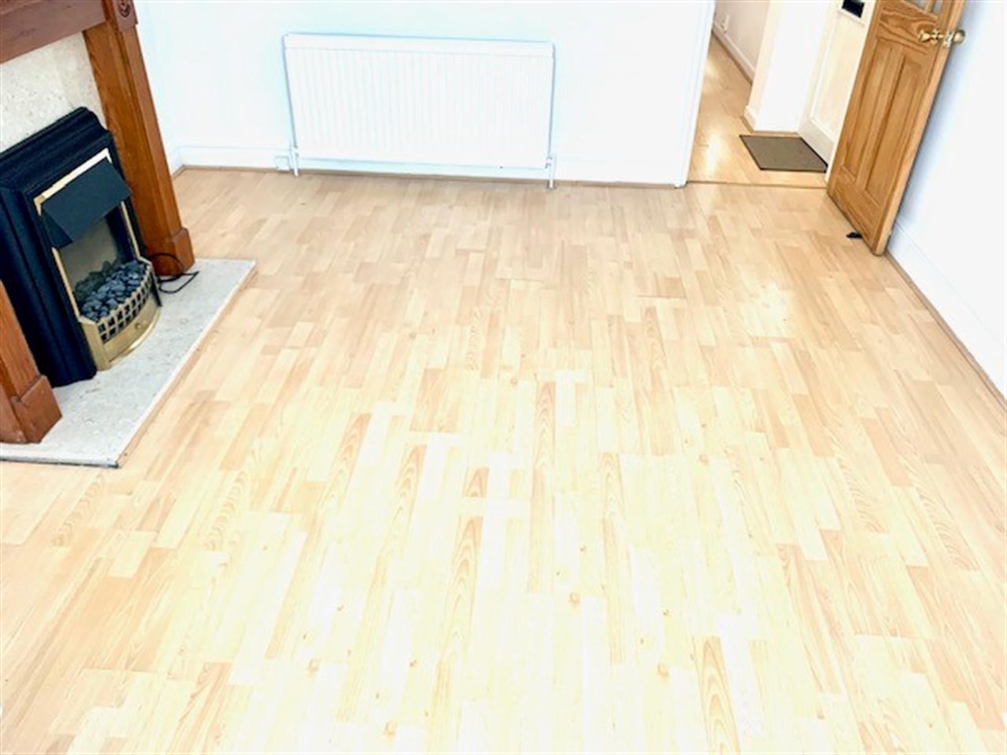 LOUNGE: Laminate flooring with window to front and electric fire.